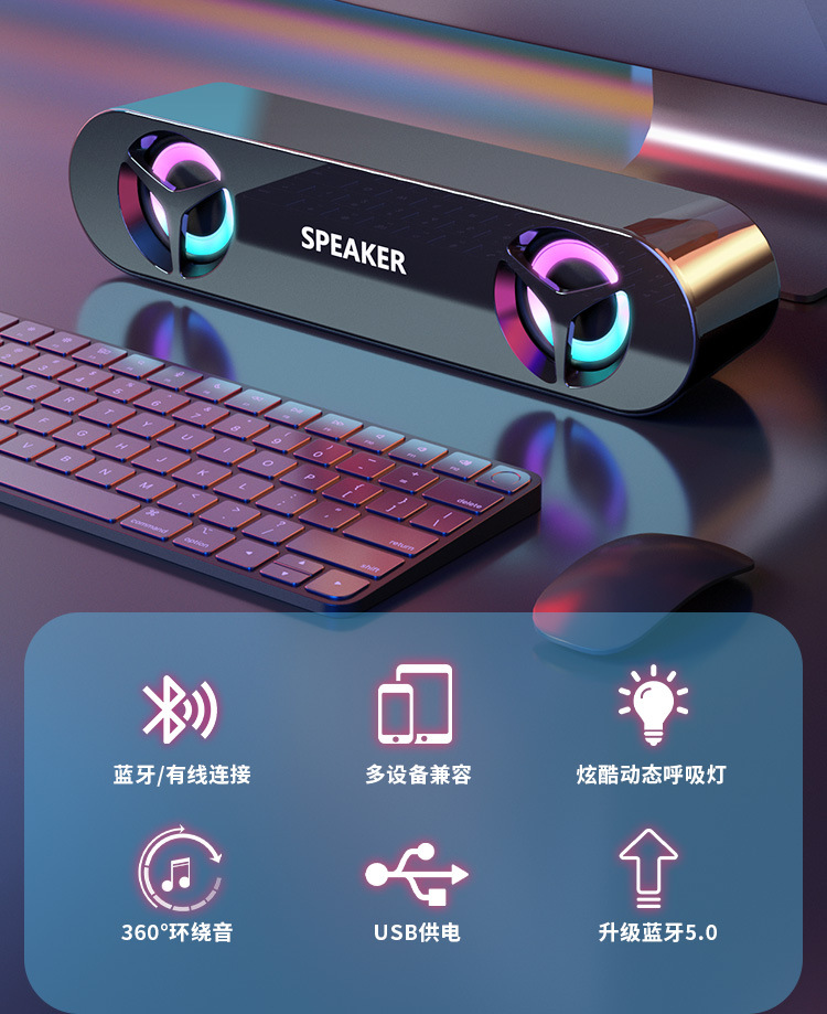Bluetooth-колонка для компьютера и мобильного телефона, мини-акустика с тяжелым сабвуфером