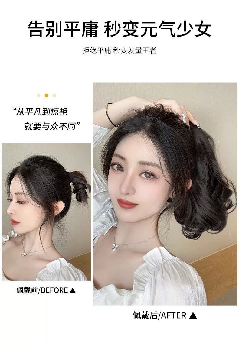Парик женский короткий хвост летний клип большой волнистый средний короткий искусственный хвост с цветком грушей кудрявые волосы плетение натуральная симуляция