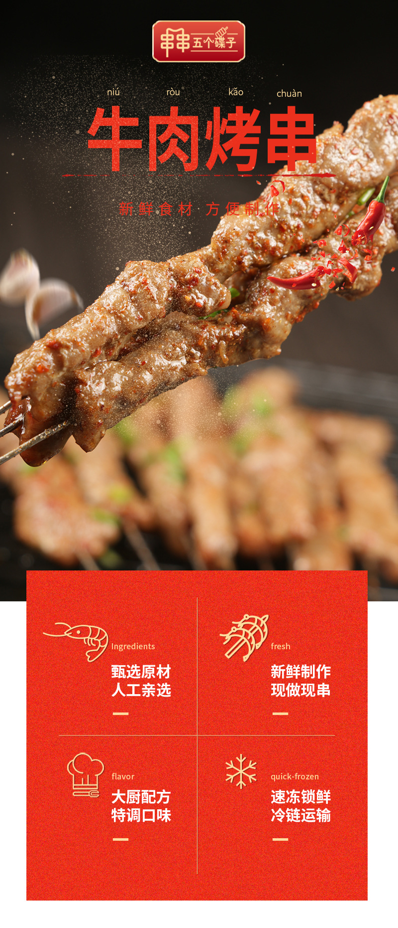 30 шампуров говядины, барбекю говядина, ингредиенты для барбекю, полуфабрикаты, замороженные свежие шампуры, коммерческие ингредиенты