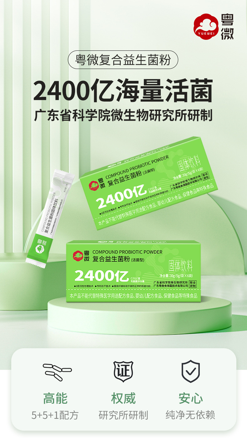 OEM обработка комплексного пробиотического порошка 240 миллиардов трехслойные капсулированные активные бактерии пребиотический твердый напиток индивидуализация