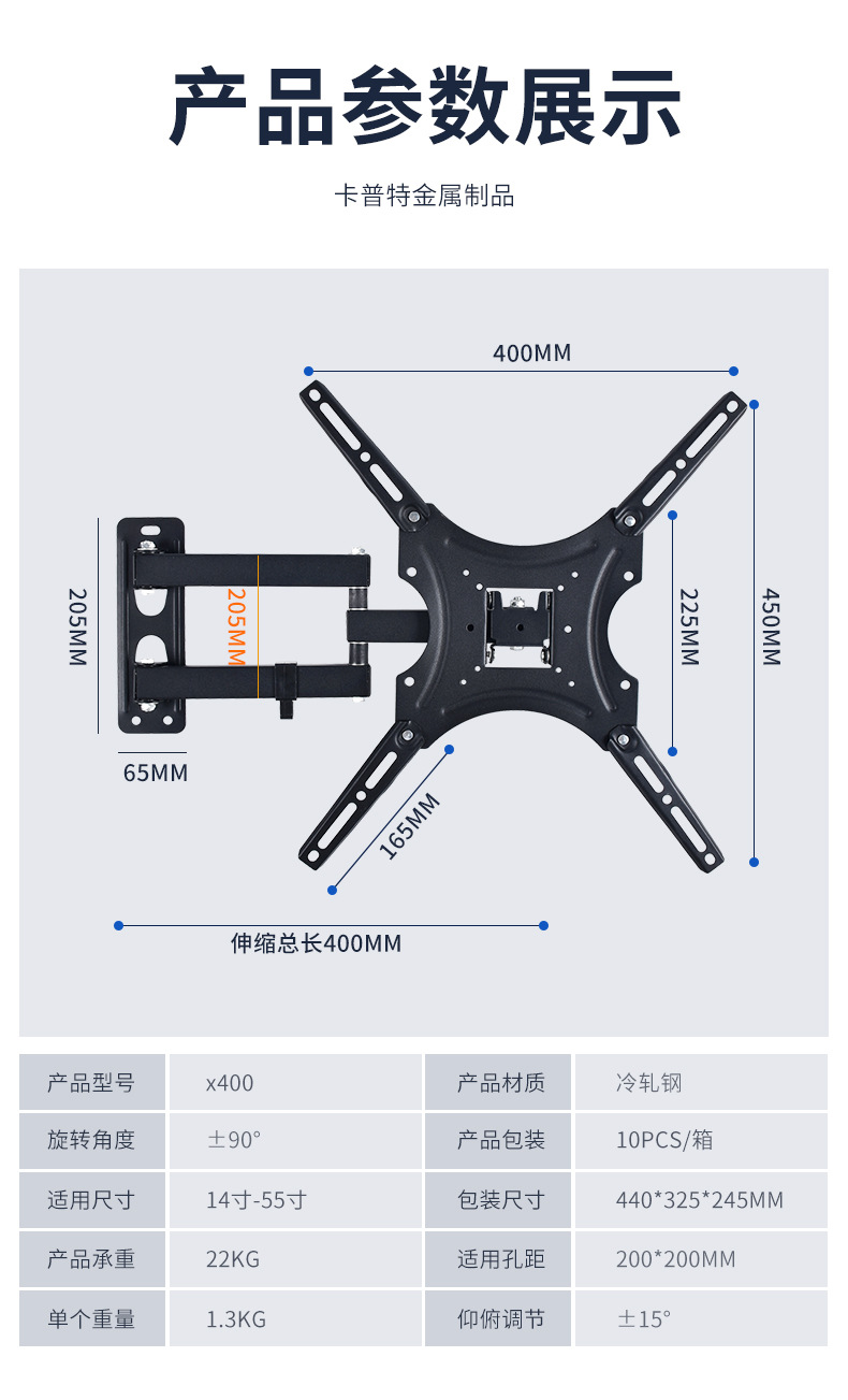 Крепление для телевизора 14-55 дюймов, выдвижная скоба, 180 градусов поворот, настенное крепление