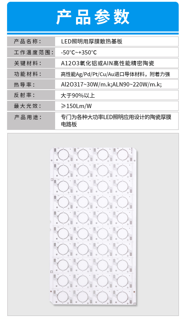 Толстослойная подложка, толстослойная плата, керамическая подложка Cob, подложка для рассеивания тепла Cob для светодиодного освещения