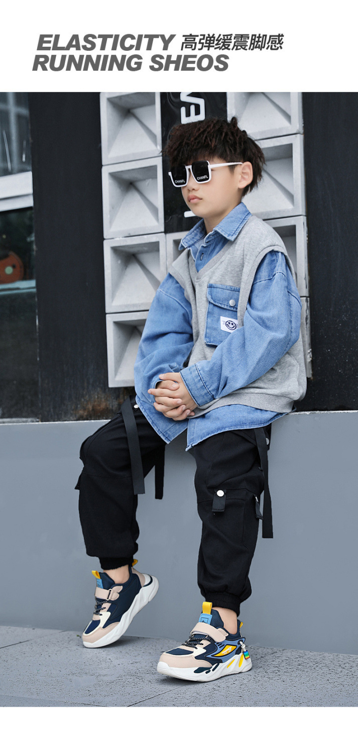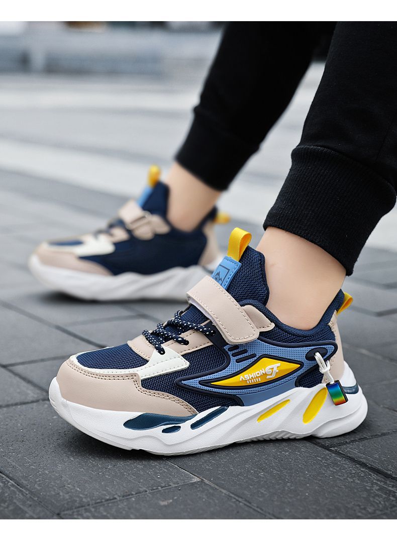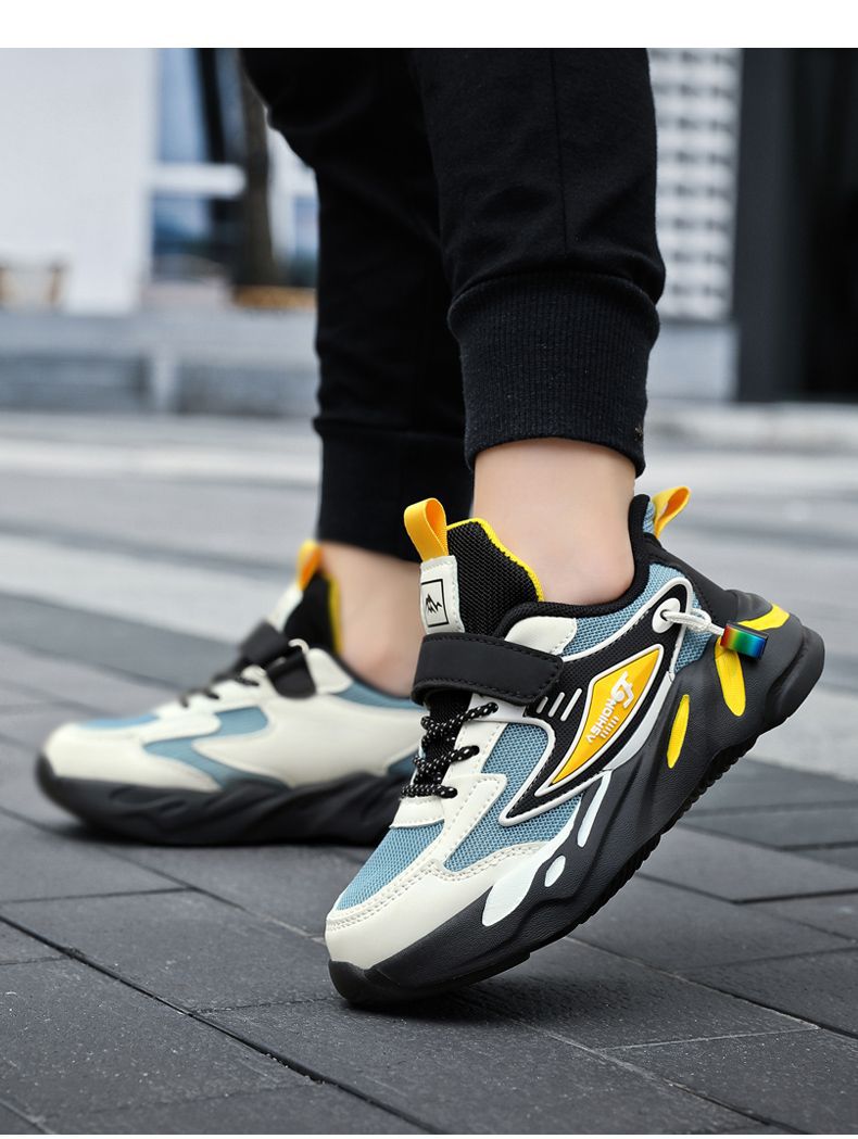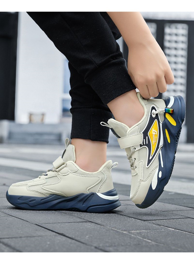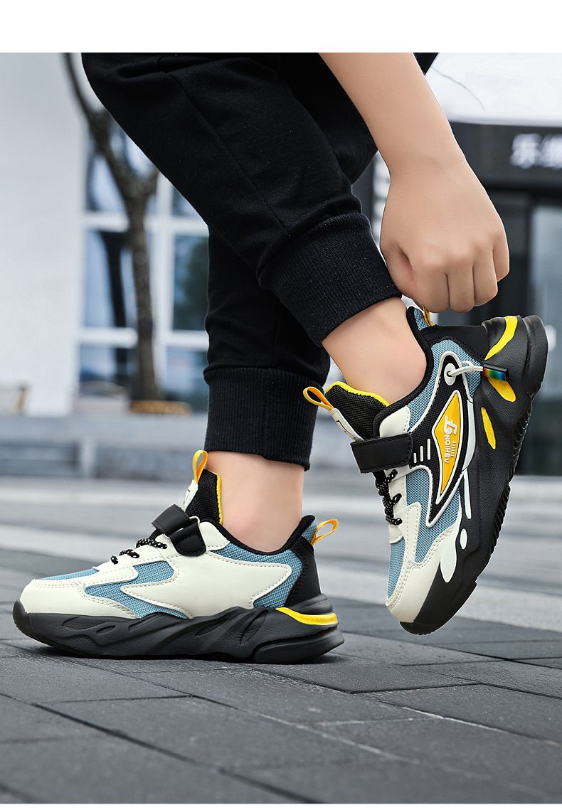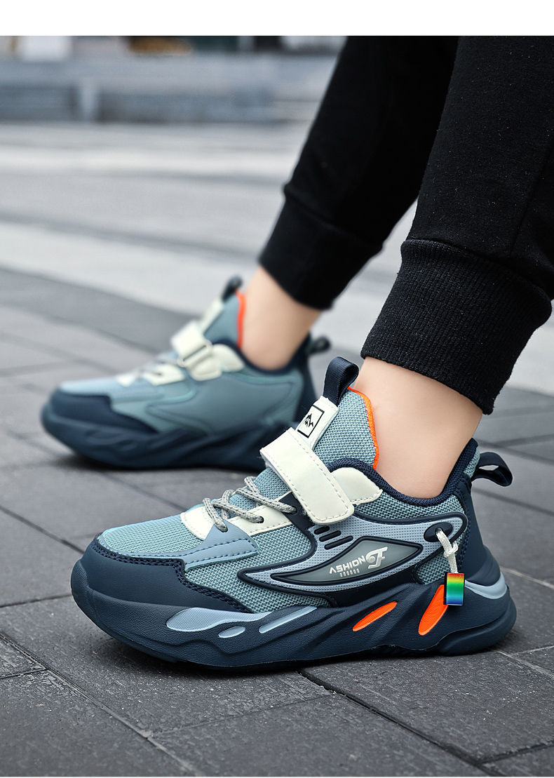 Кроссовки для мальчиков весна и осень школьные беговые туфли для детей среднего и большого размера сетчатые кожаные повседневные туфли противоскользящие