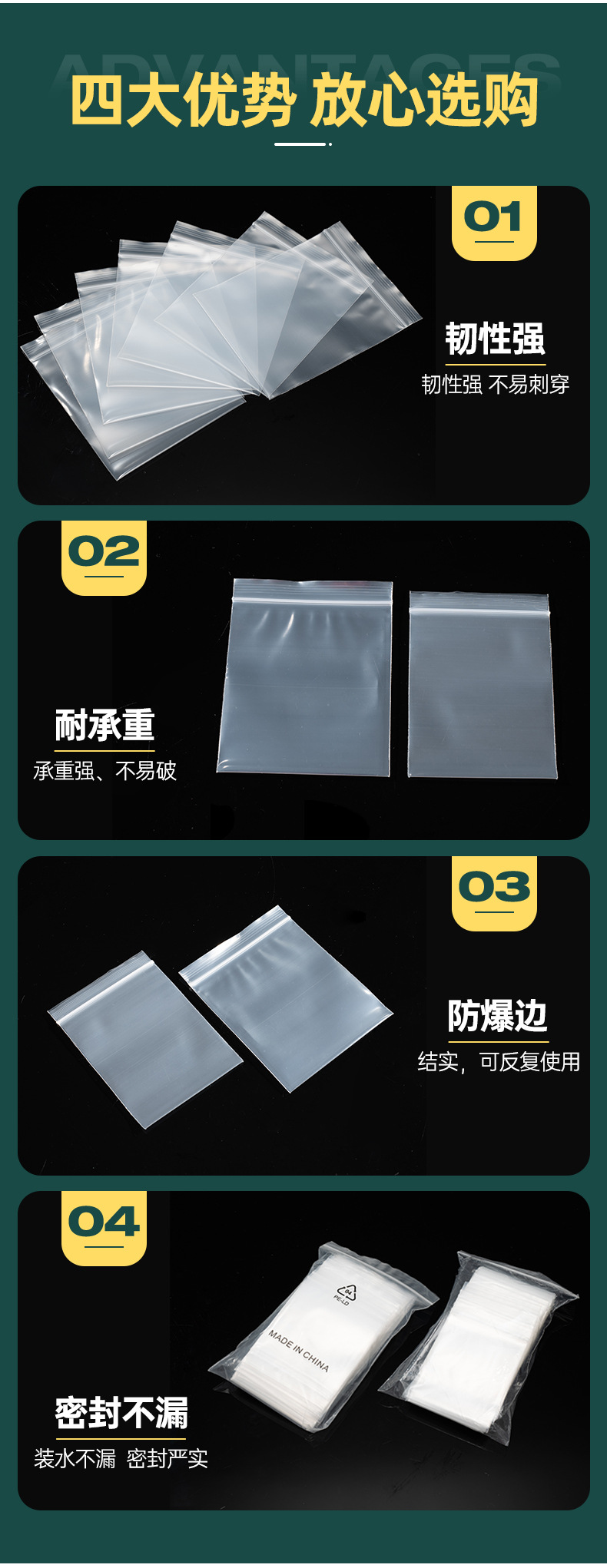Can be used repeatedly Pe ziplock bag