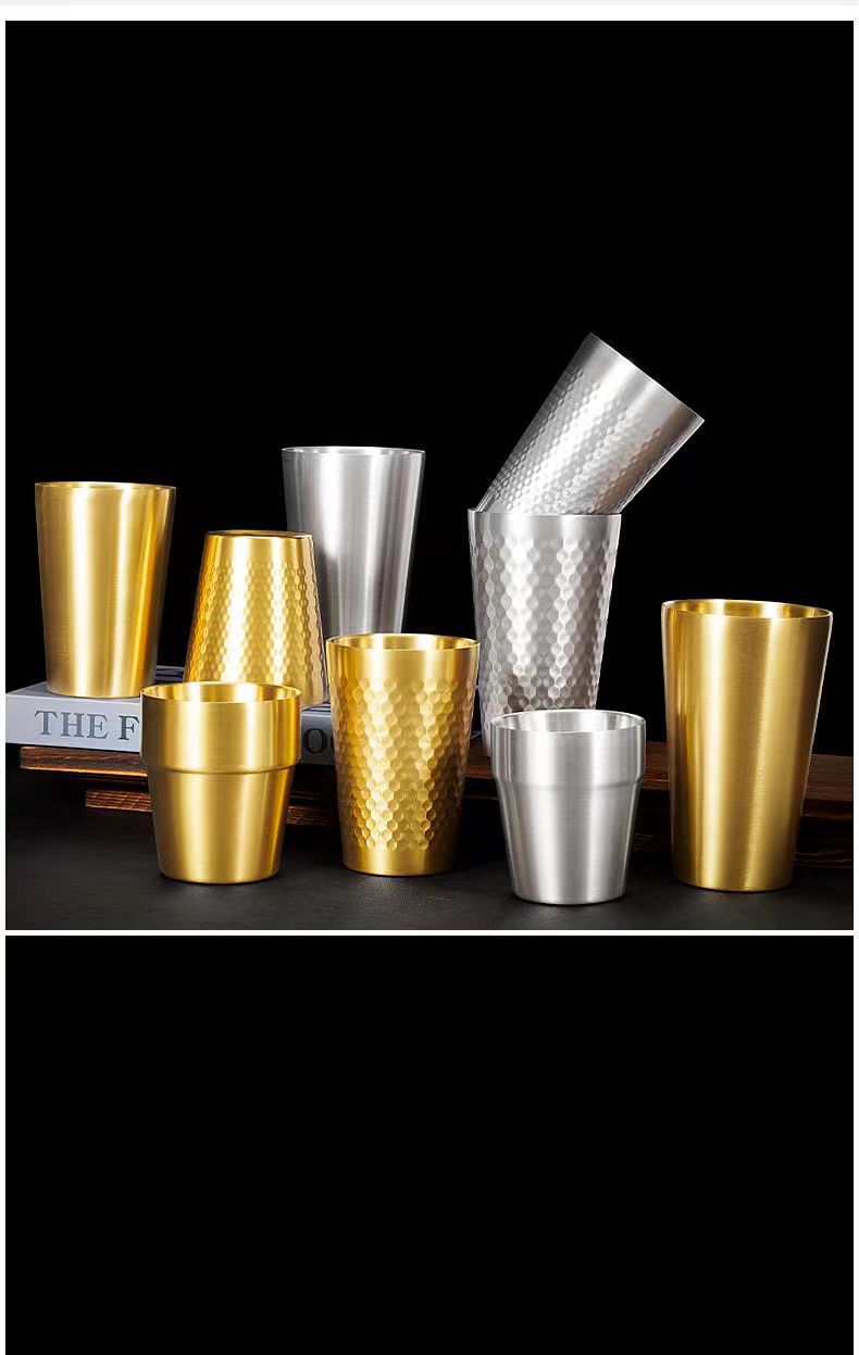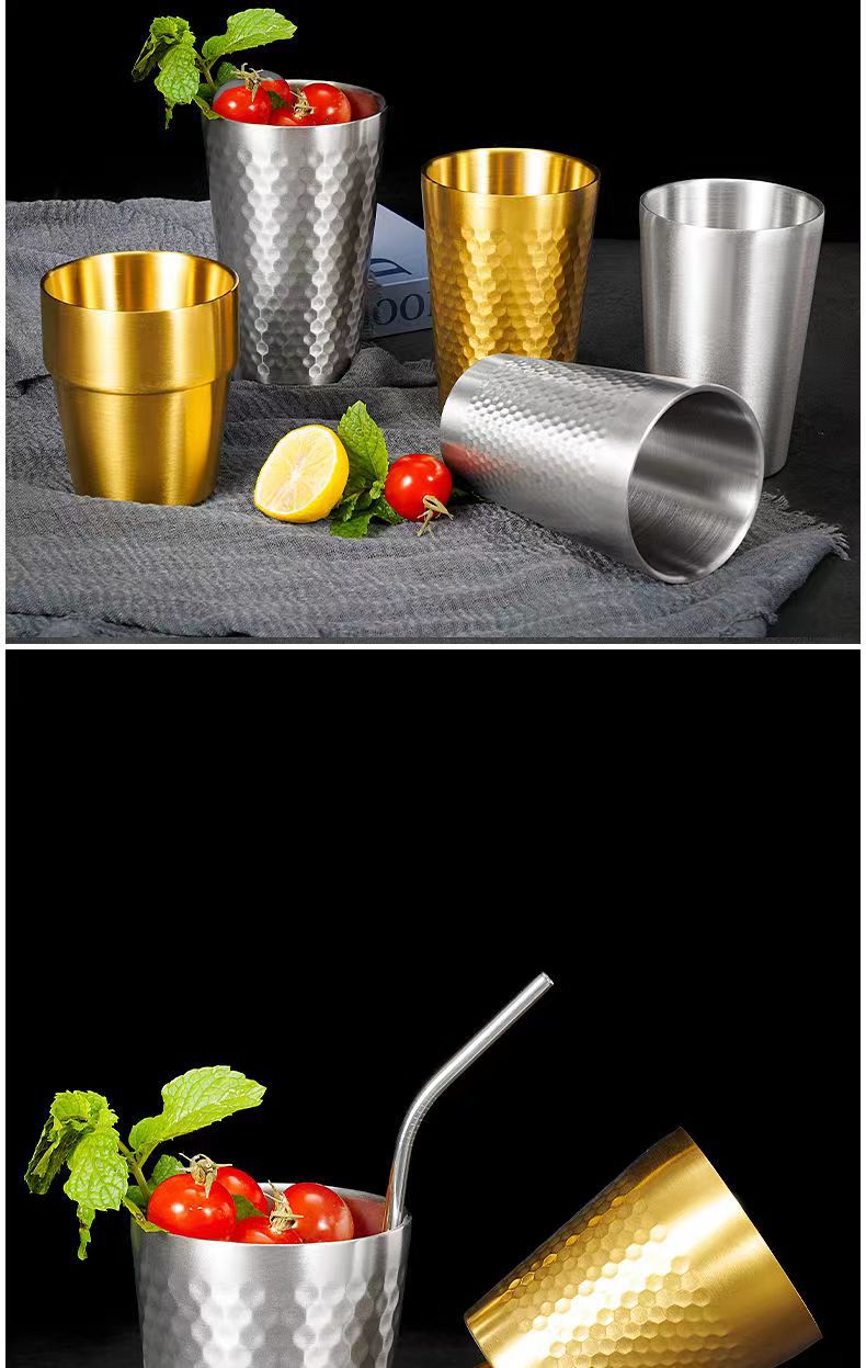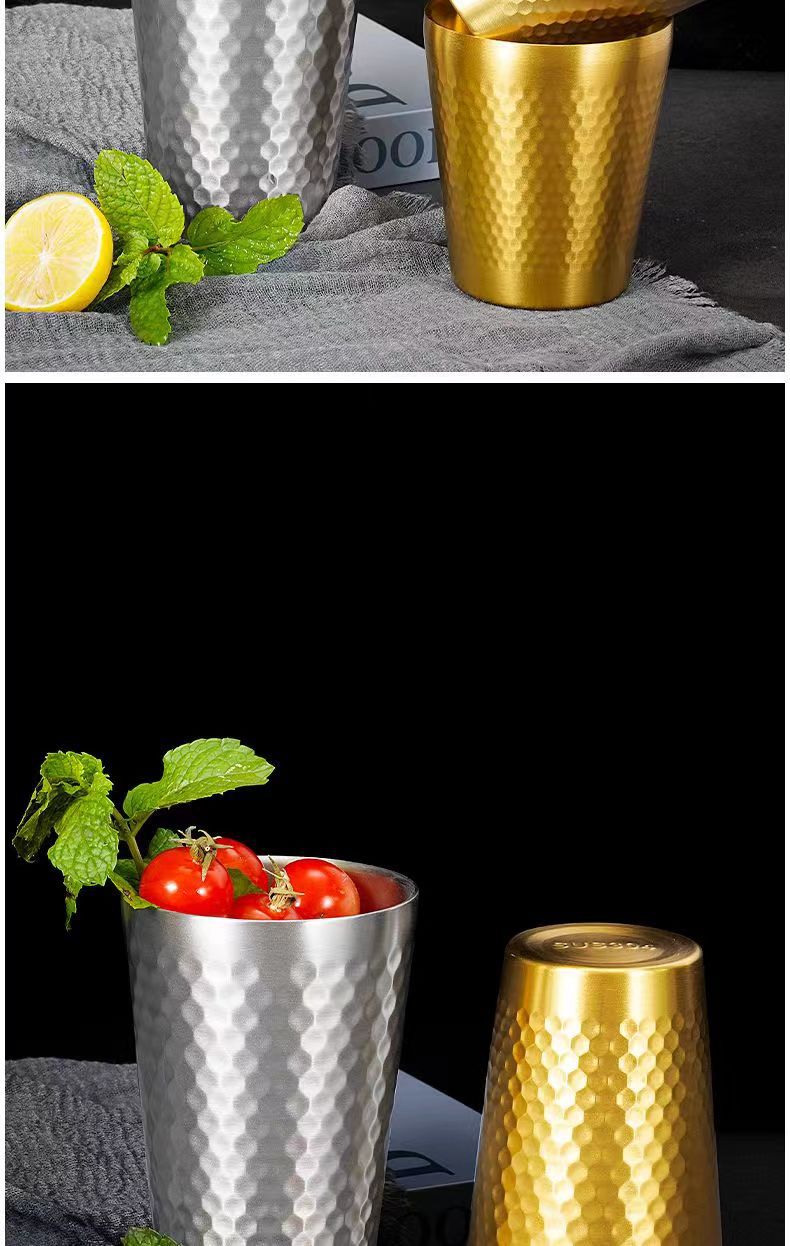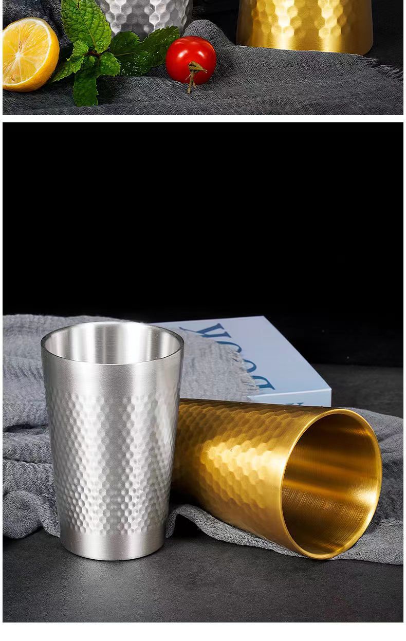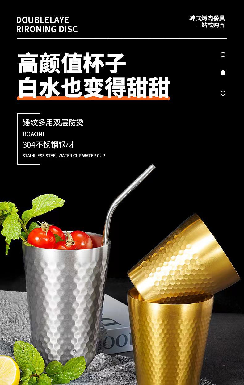 Чашка из нержавеющей стали 304 с молоточковым узором, двуслойная чашка, корейская чашка, термоизолирующая чашка, позолоченная чашка, стильная чашка для барбекю, чашка с алмазным узором