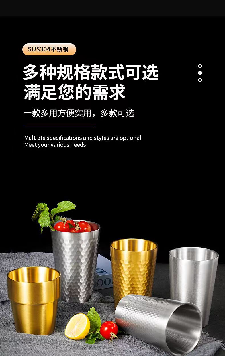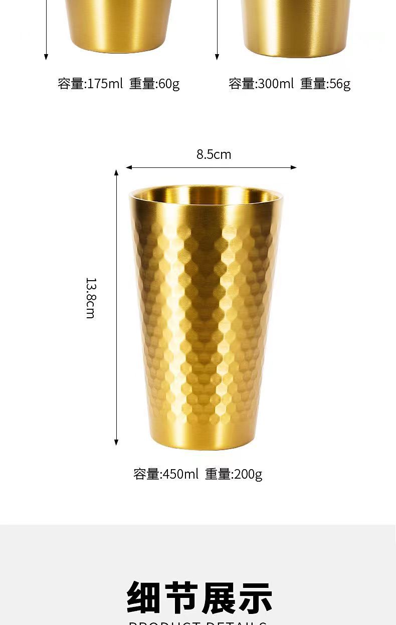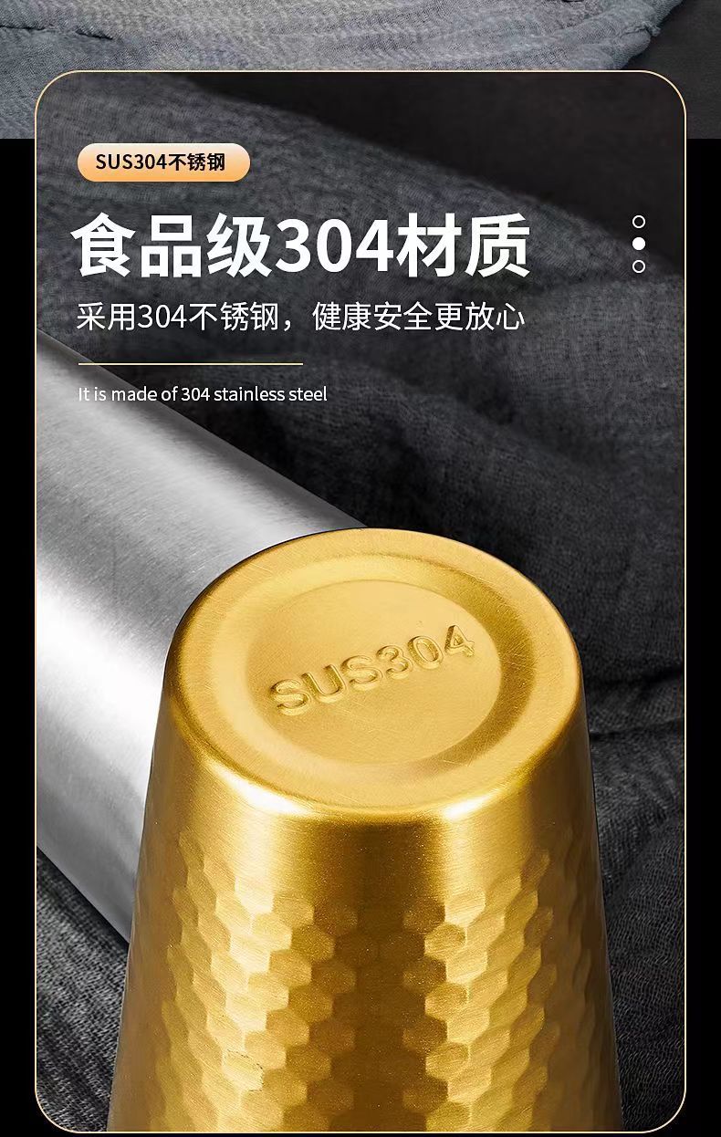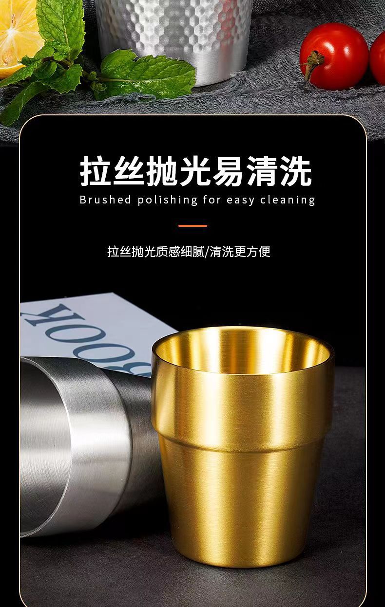 Чашка из нержавеющей стали 304 с молоточковым узором, двуслойная чашка, корейская чашка, термоизолирующая чашка, позолоченная чашка, стильная чашка для барбекю, чашка с алмазным узором