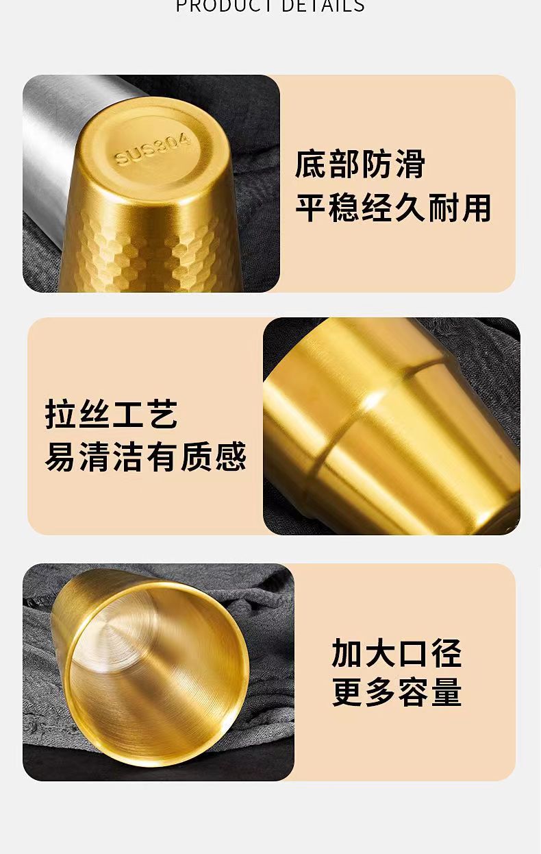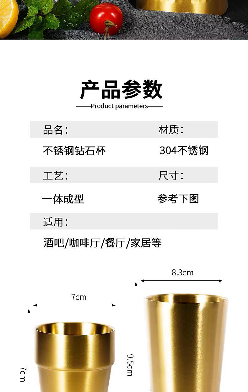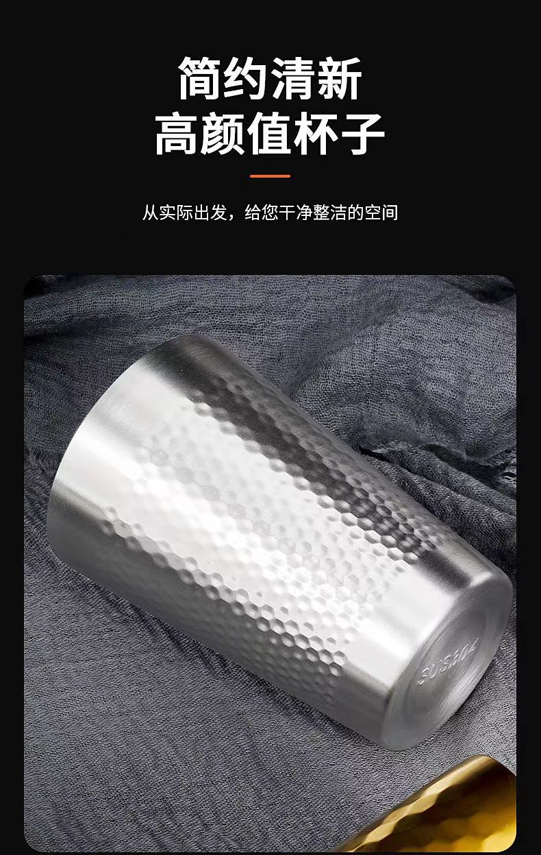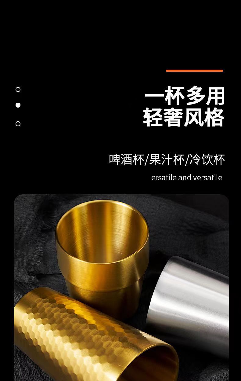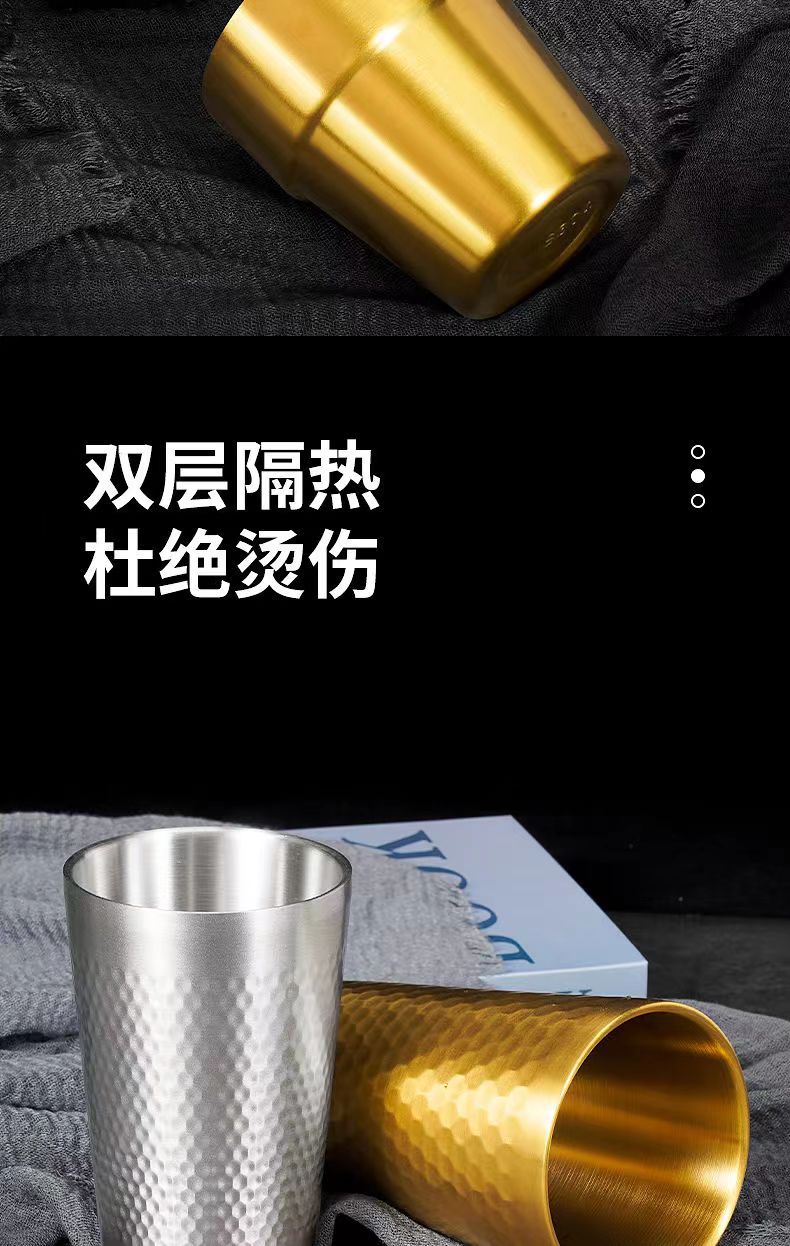 Чашка из нержавеющей стали 304 с молоточковым узором, двуслойная чашка, корейская чашка, термоизолирующая чашка, позолоченная чашка, стильная чашка для барбекю, чашка с алмазным узором