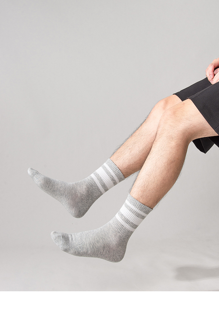 Индивидуальные мужские носки средней длины для осени и зимы, хлопковые, дышащие, антибактериальные, классические полосатые, высокоэластичные