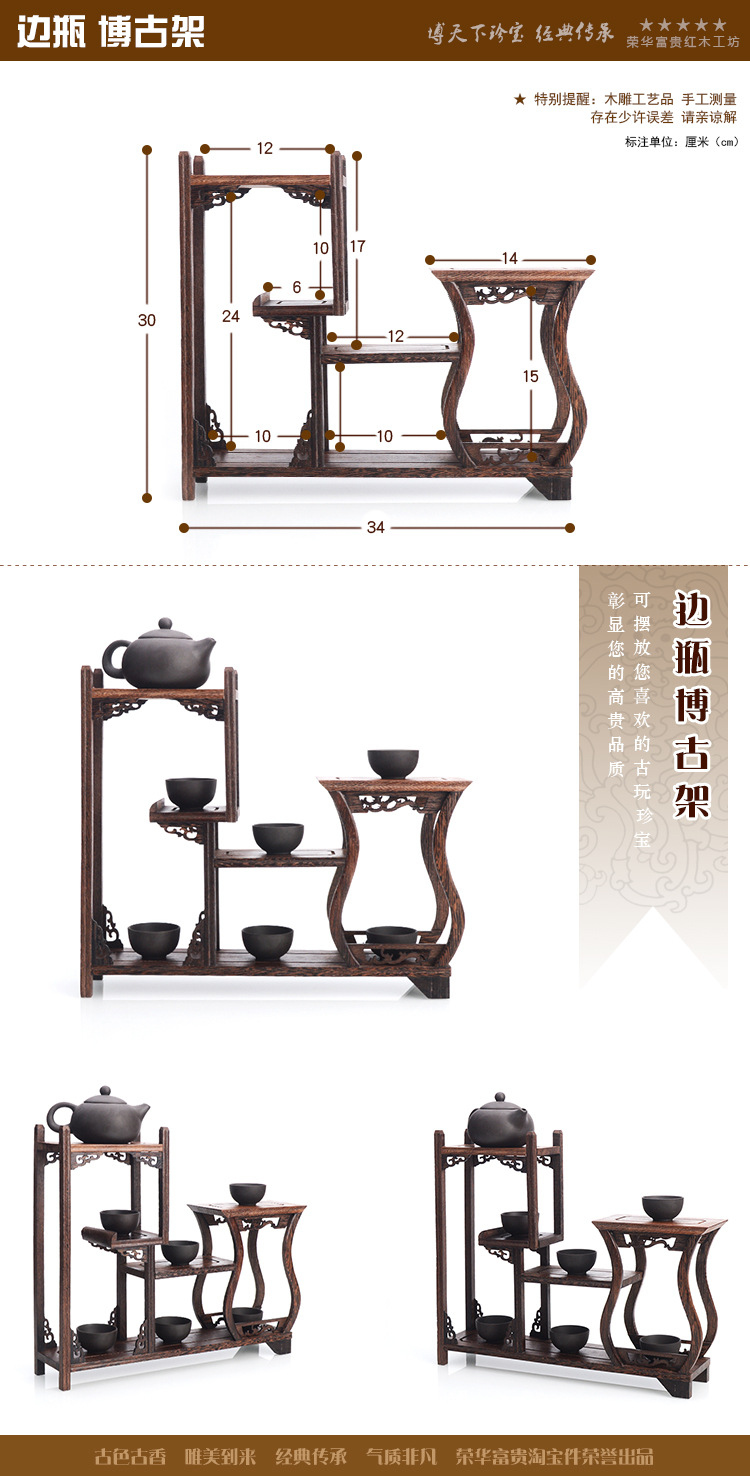 Маленький антикварный стеллаж из дерева куриного крыла, подставка для чайников, чайный набор, ваза, мини-антресоль в китайском стиле