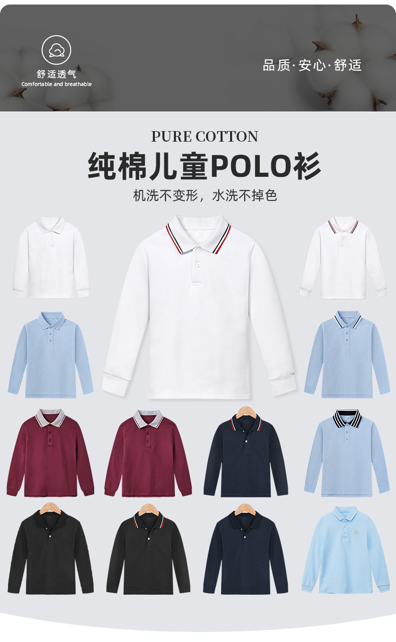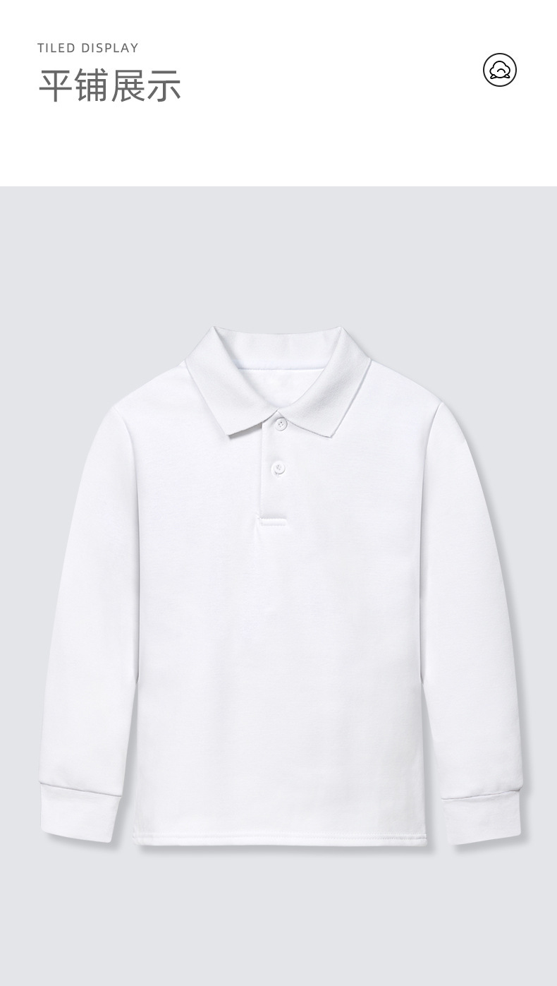Детская весенне-осенняя чисто белая поло для учеников начальной школы, хлопковая синяя школьная форма, полосатый воротник, длинный рукав, однотонная футболка