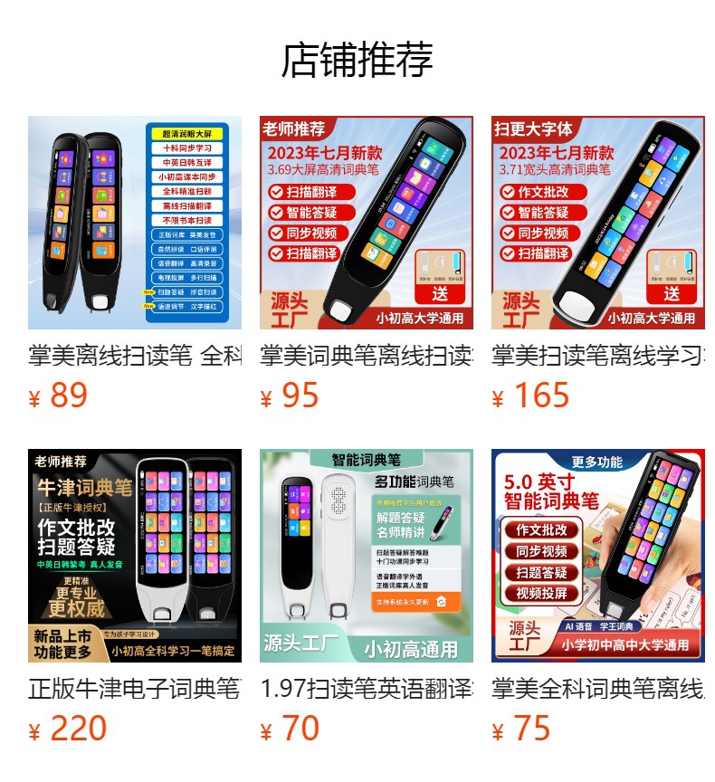 ![]() | Black | SX [questions scan 21]: offline scanning + voice chinese and english translation + all-subject questions scanning + video screen projection | 2шт: ¥100.00, 30шт: ¥95.00, 200шт: ¥85.00 | 6503 | 5304036666554 | |