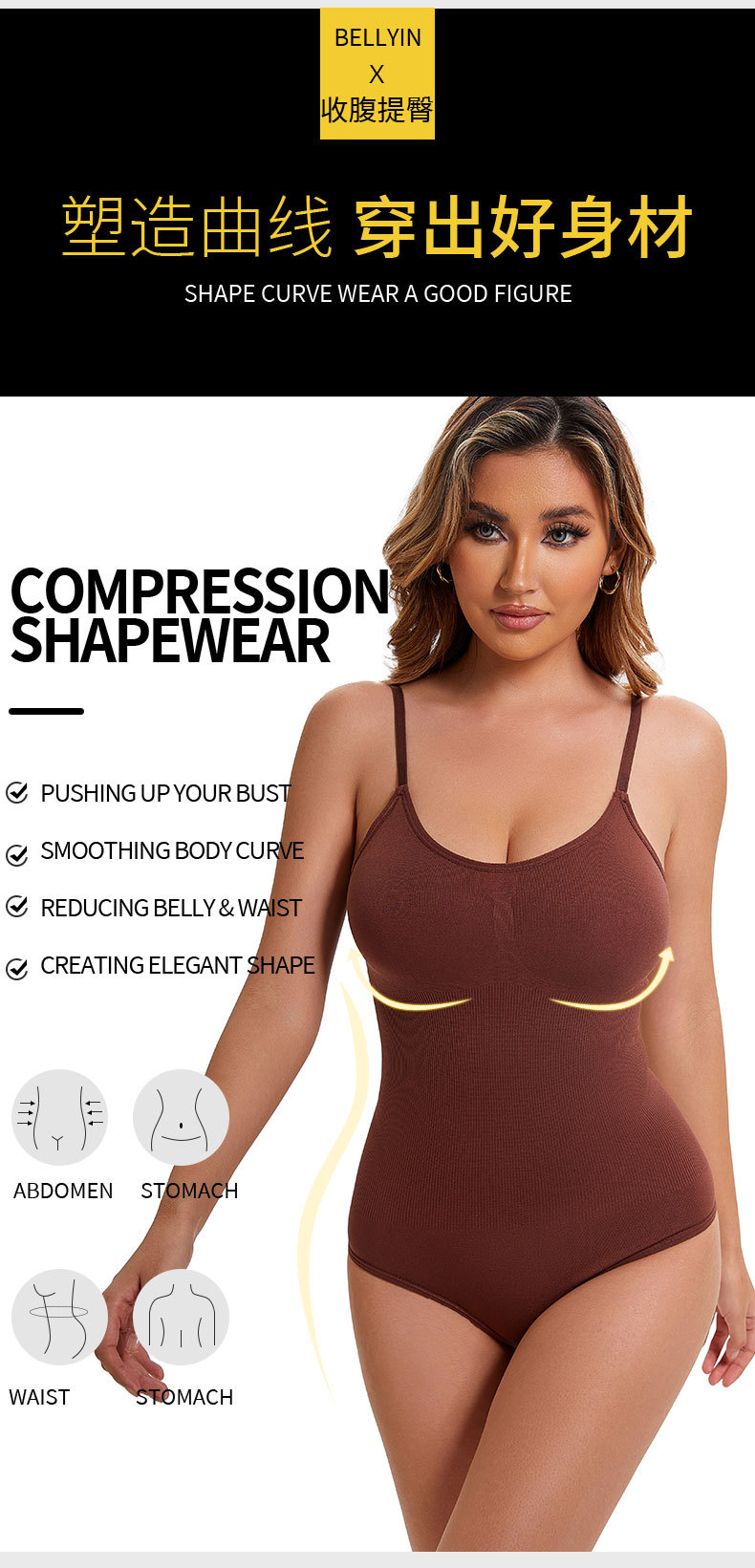 Функция Waist support, Stereotypes, Gather, Traceless, Hip lifting, Belly contracting, Chest support, Adjustable type