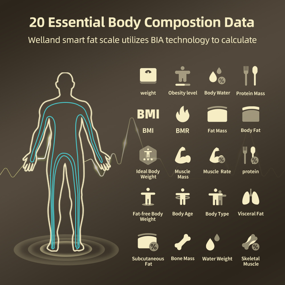 Интеллектуальные весы для определения жира с восемью электродами, спортивные весы с Bluetooth, измерение жира через приложение