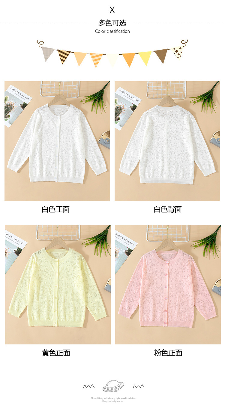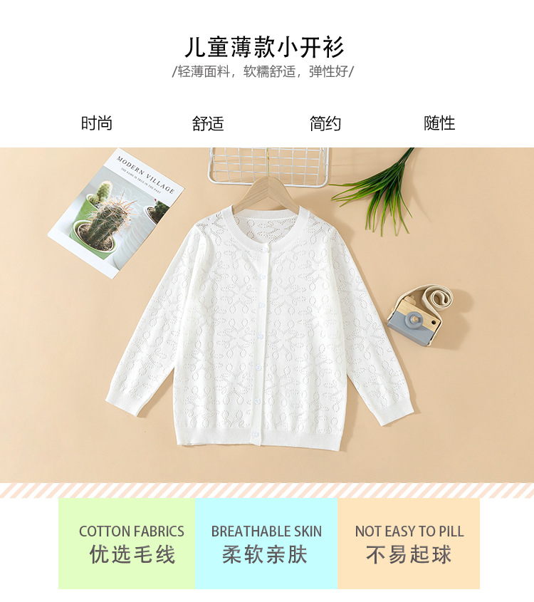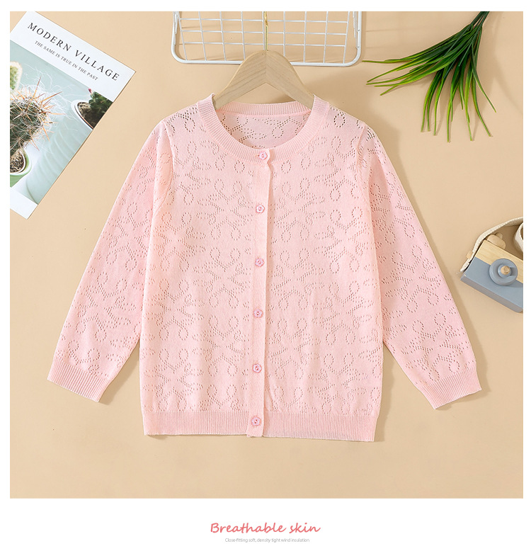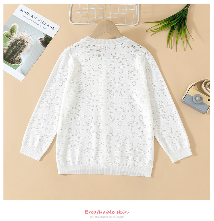 Новый кардиган для мальчиков и девочек 2024, весна-осень, полый свитер для детей, тонкий свитер для малышей