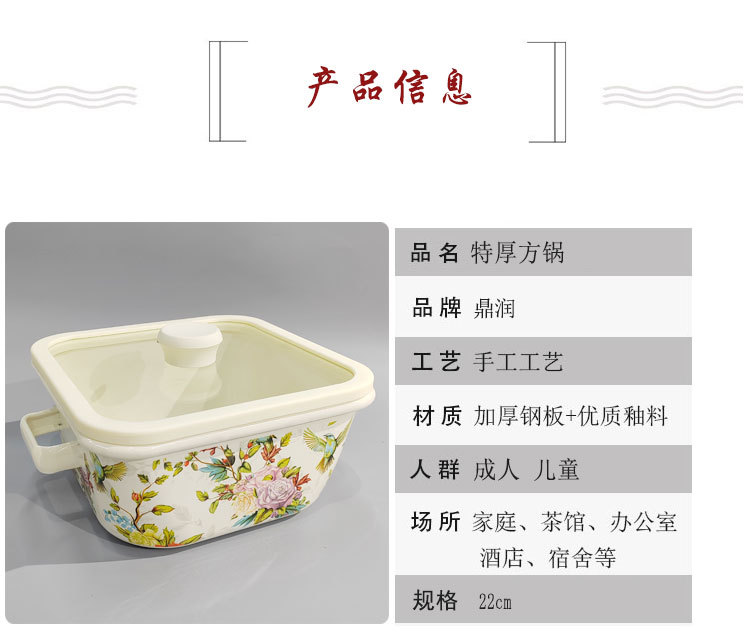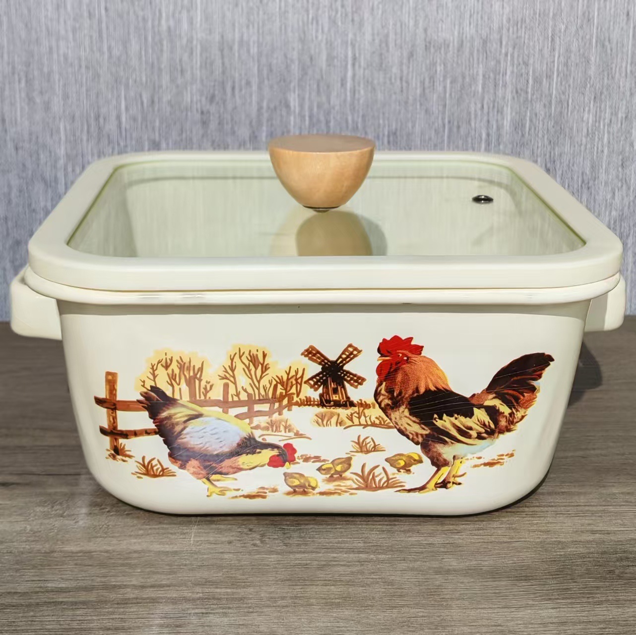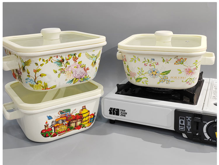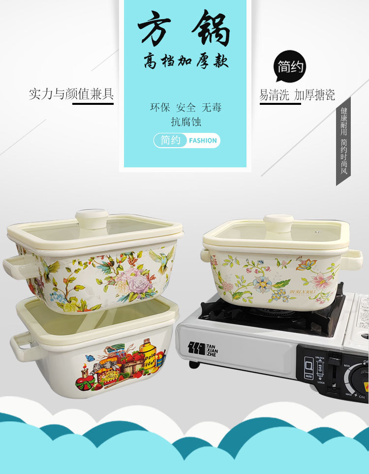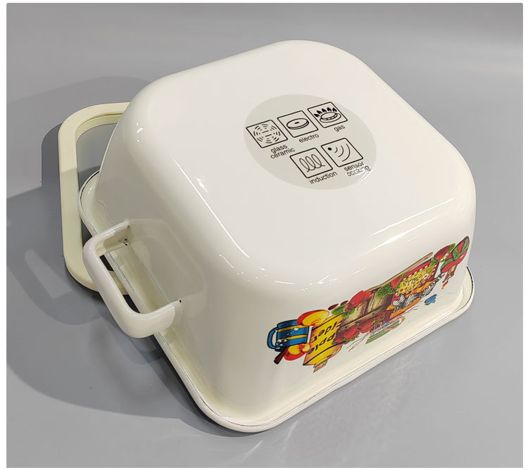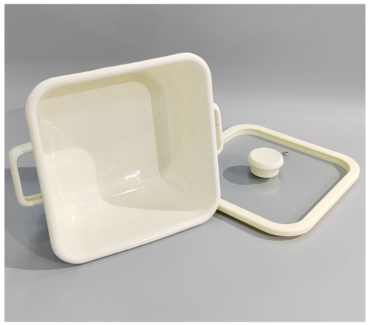 Эмальированная квадратная кастрюля, утолщенная, с двойными ручками, для приготовления лапши, супа, для газовой и индукционной плит