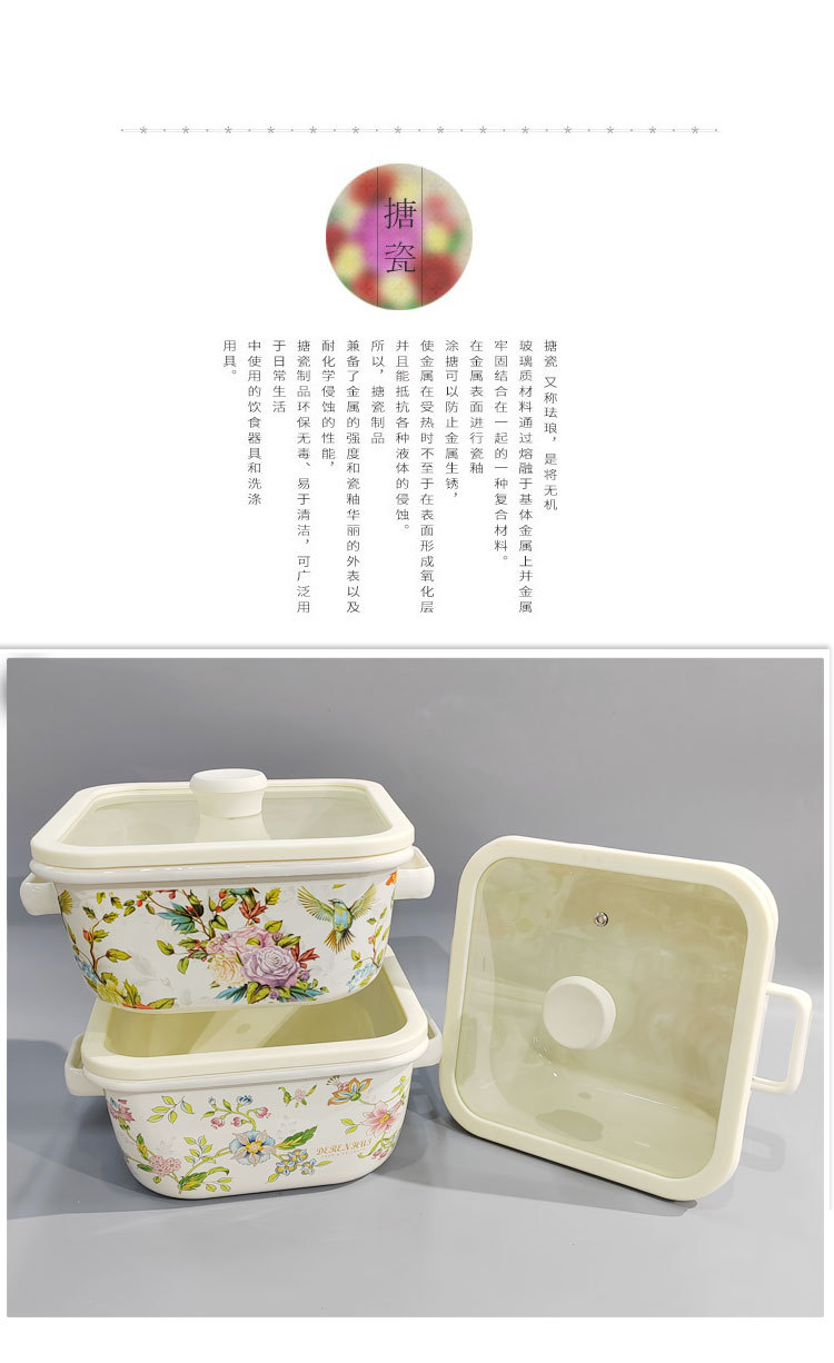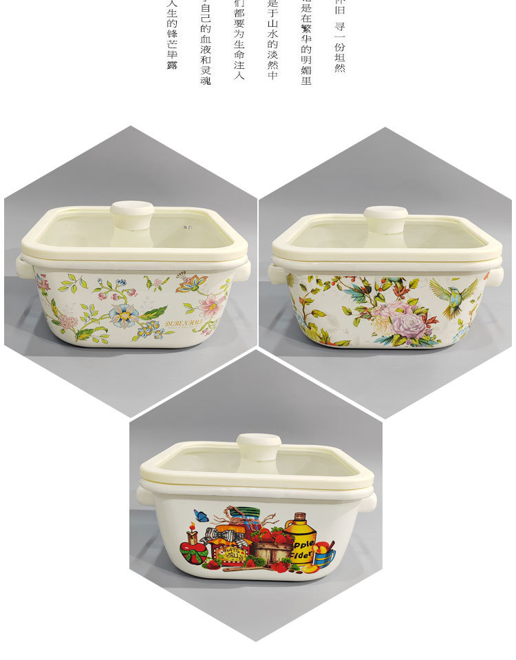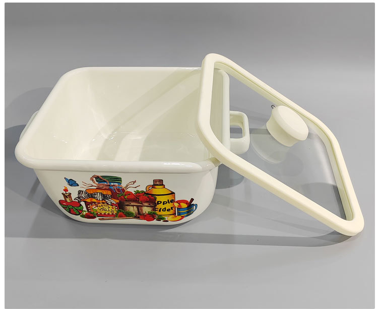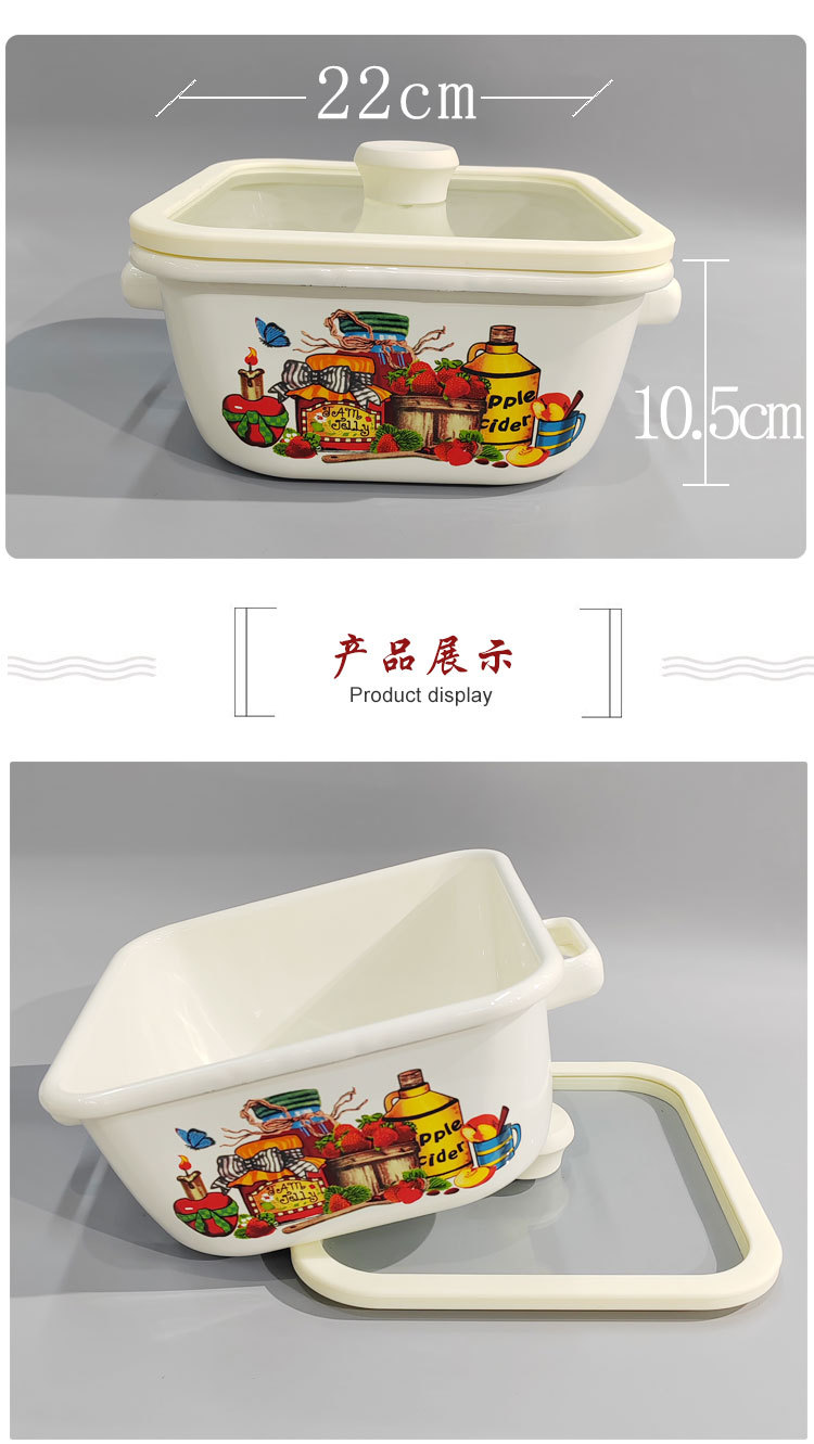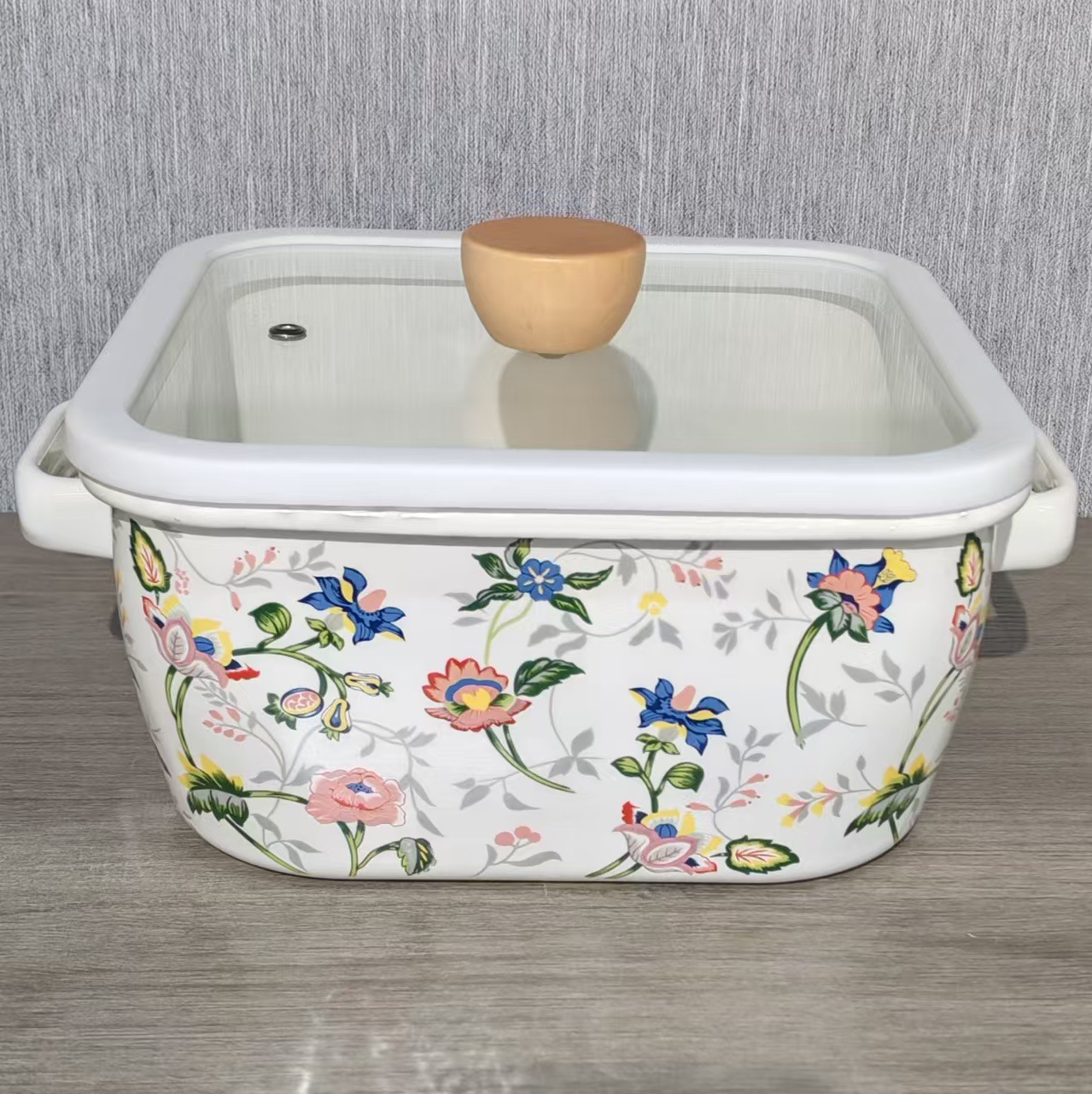 Эмальированная квадратная кастрюля, утолщенная, с двойными ручками, для приготовления лапши, супа, для газовой и индукционной плит