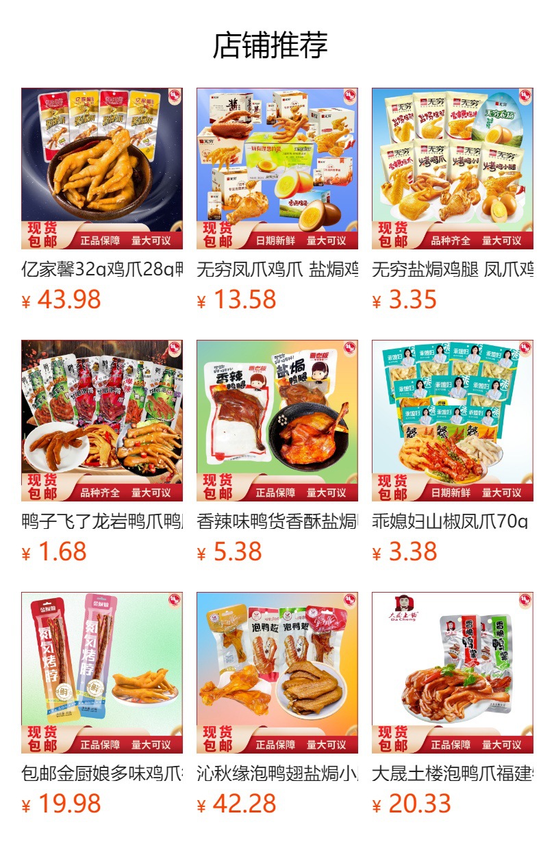 ![]() | Duck flies [chicken feet are sour and spicy] 30.9g single bag (150 bags are 1 box) | ¥2.2 / ≈ 27 ₽ | 4290 | 5219425157125 | |