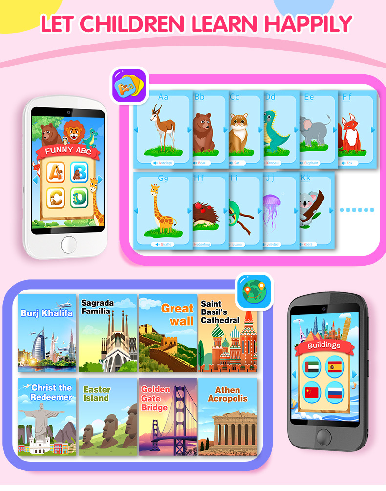 Кросс-бордерная игра Детский мобильный телефон Животные Обучение Сенсорный экран Зарубежная торговля Amazon Источник Фабрика Умная головоломка