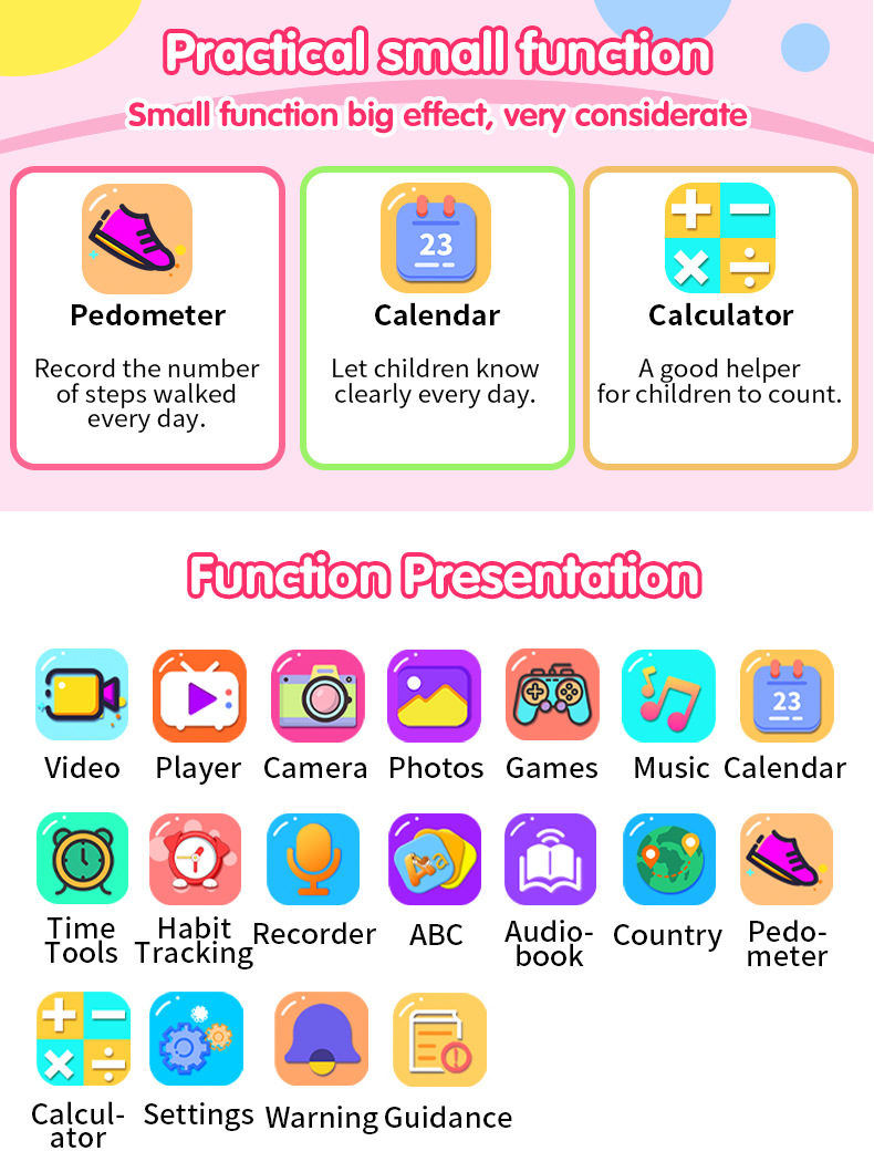 播放、音乐播放、录音、时间工具、计算器、日历、计步、习惯追