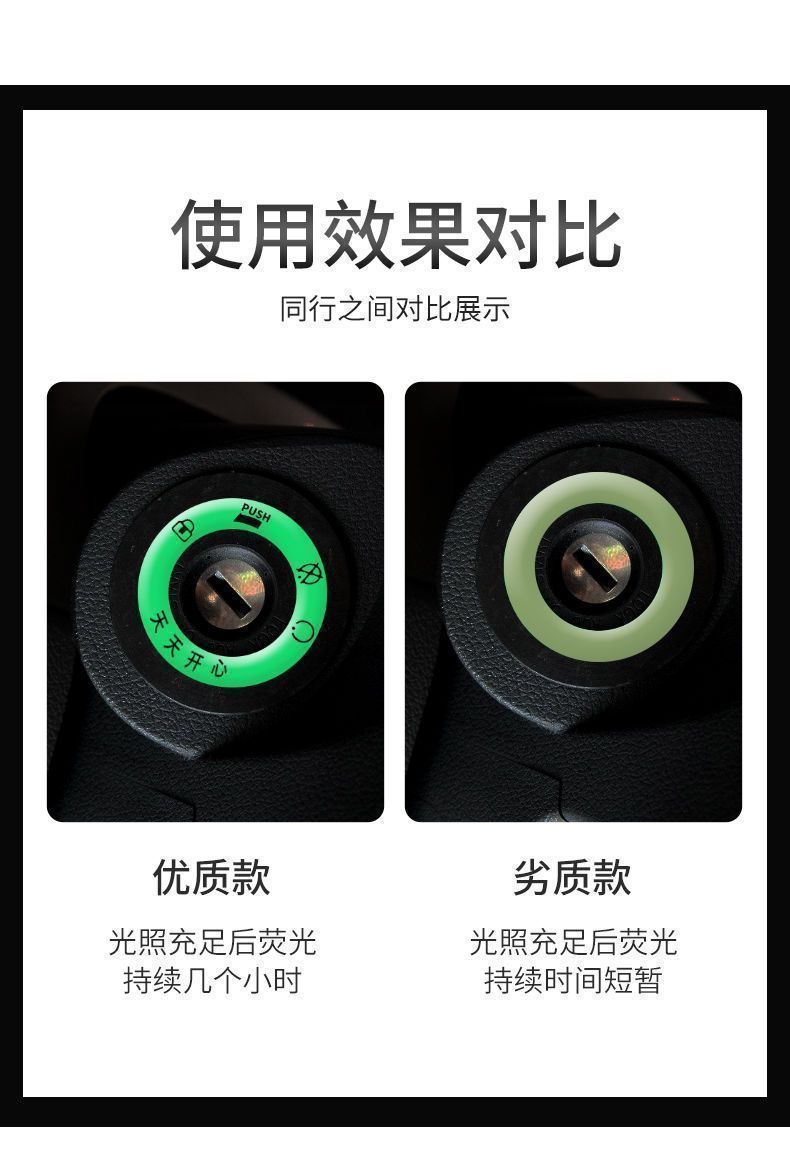 Светящийся ключ зажигания для электромобиля, суперяркие наклейки для отверстия ключа, декоративные флуоресцентные наклейки
