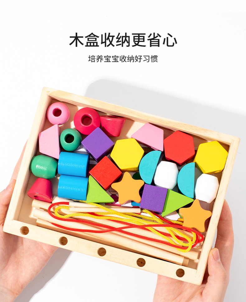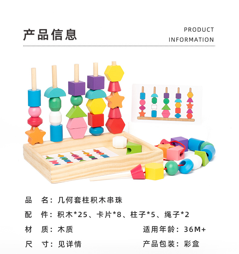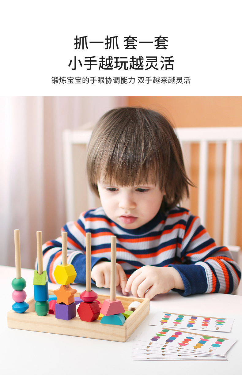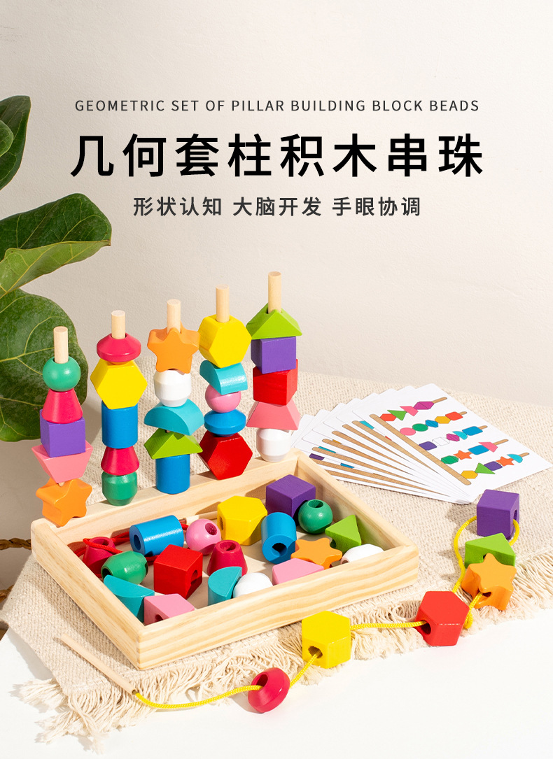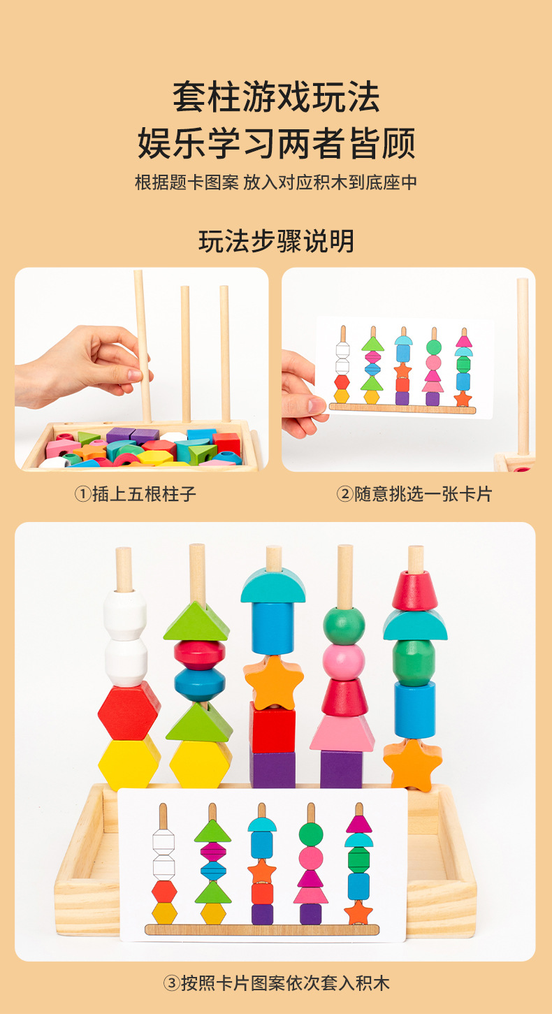 Название продукта Children's wooden five-set column building blocks beaded box baby geometric shape color matching assembling building blocks educational toys