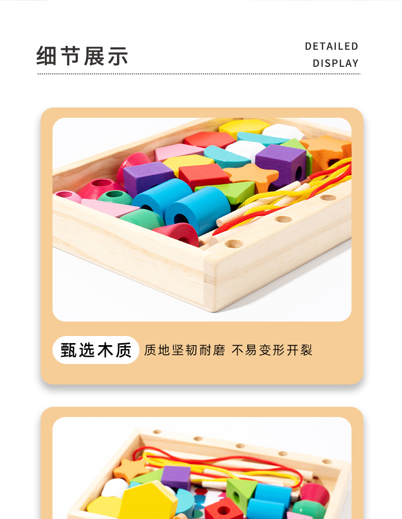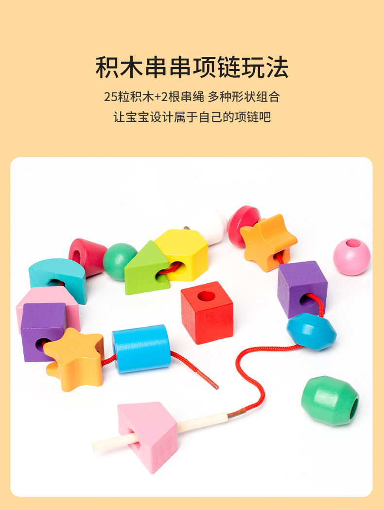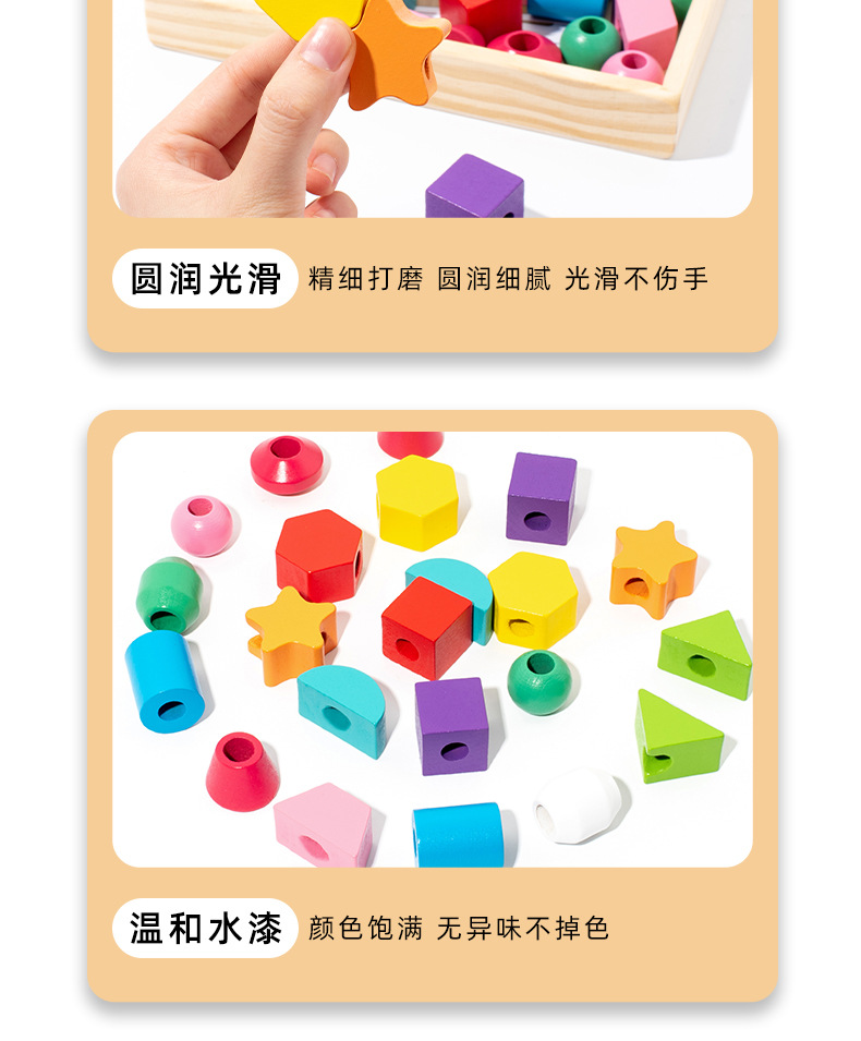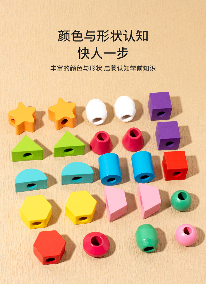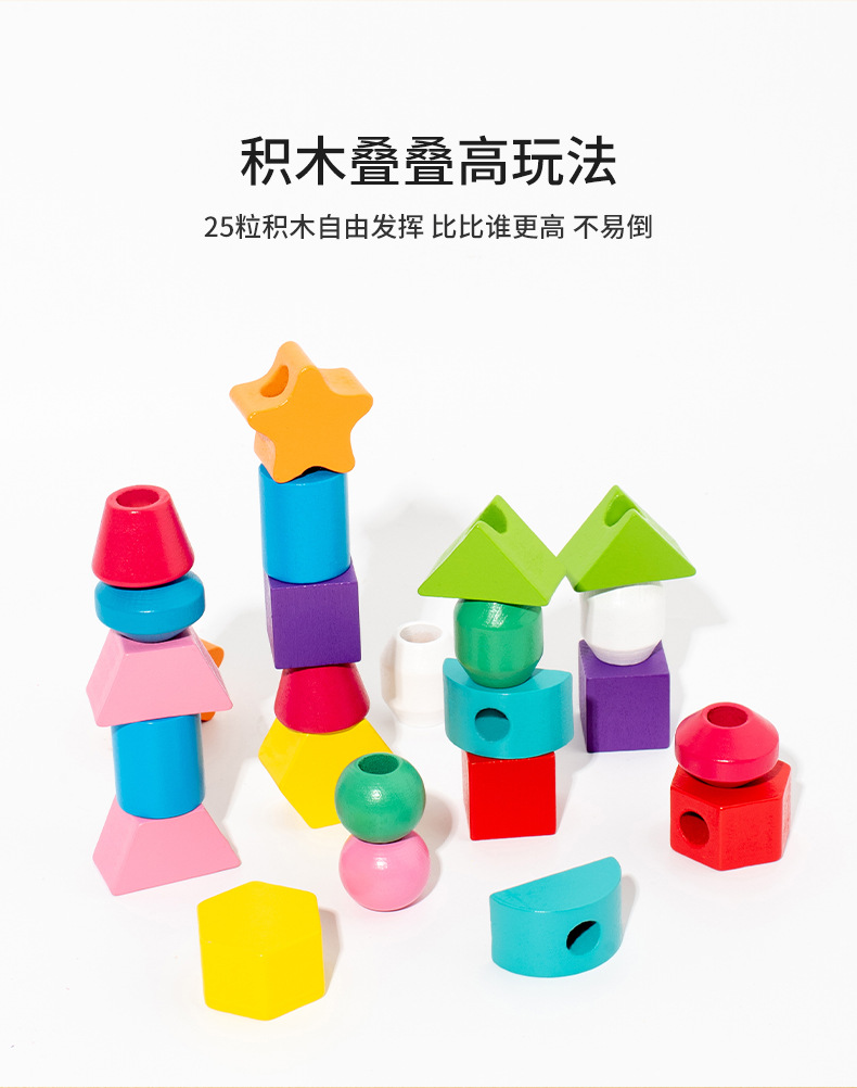 Название продукта Children's wooden five-set column building blocks beaded box baby geometric shape color matching assembling building blocks educational toys
