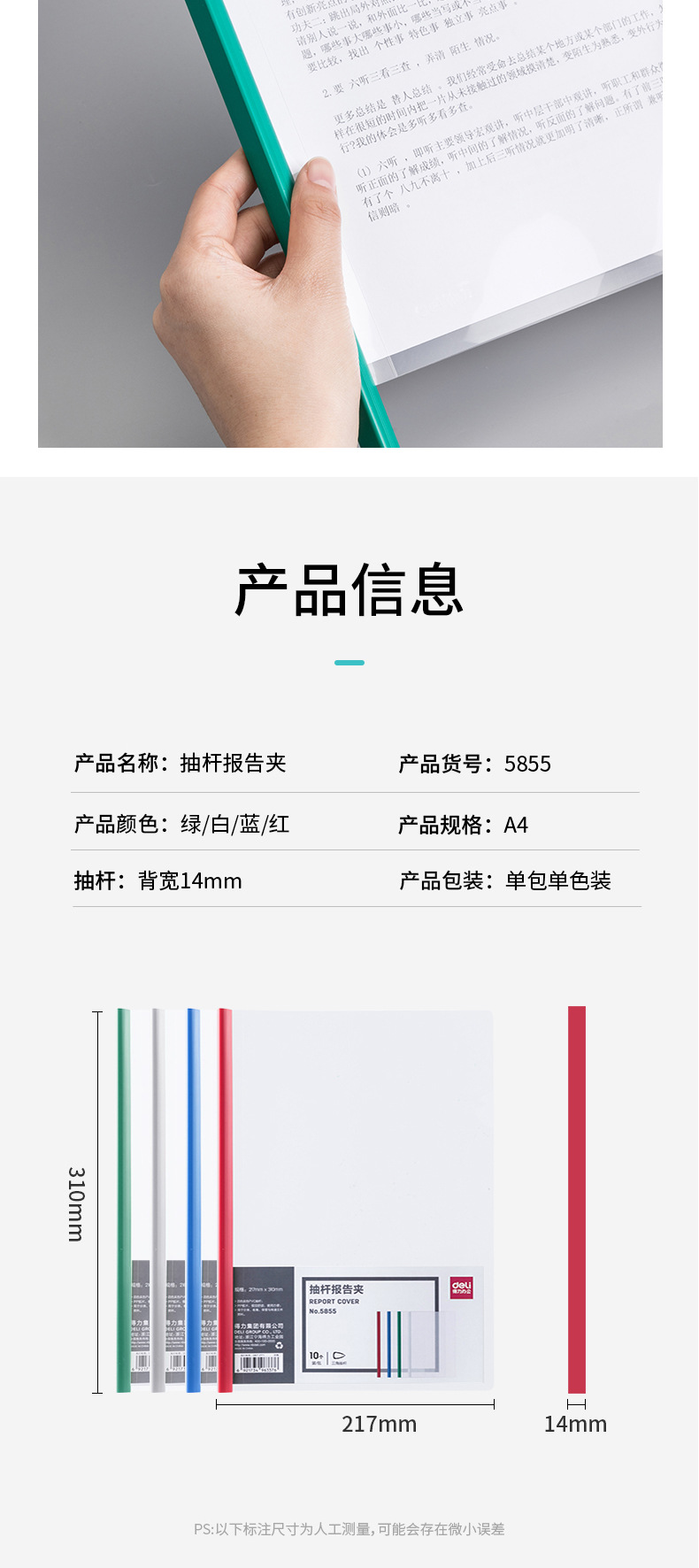 Зажимы Deli 5855, 10 штук, для документов A4