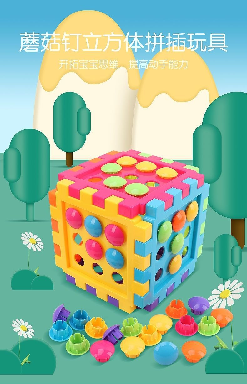 Детская большая мозаика с грибными гвоздями, пазл для сборки, кубический пазл, раннее образование, развитие интеллекта, игрушки для малышей
