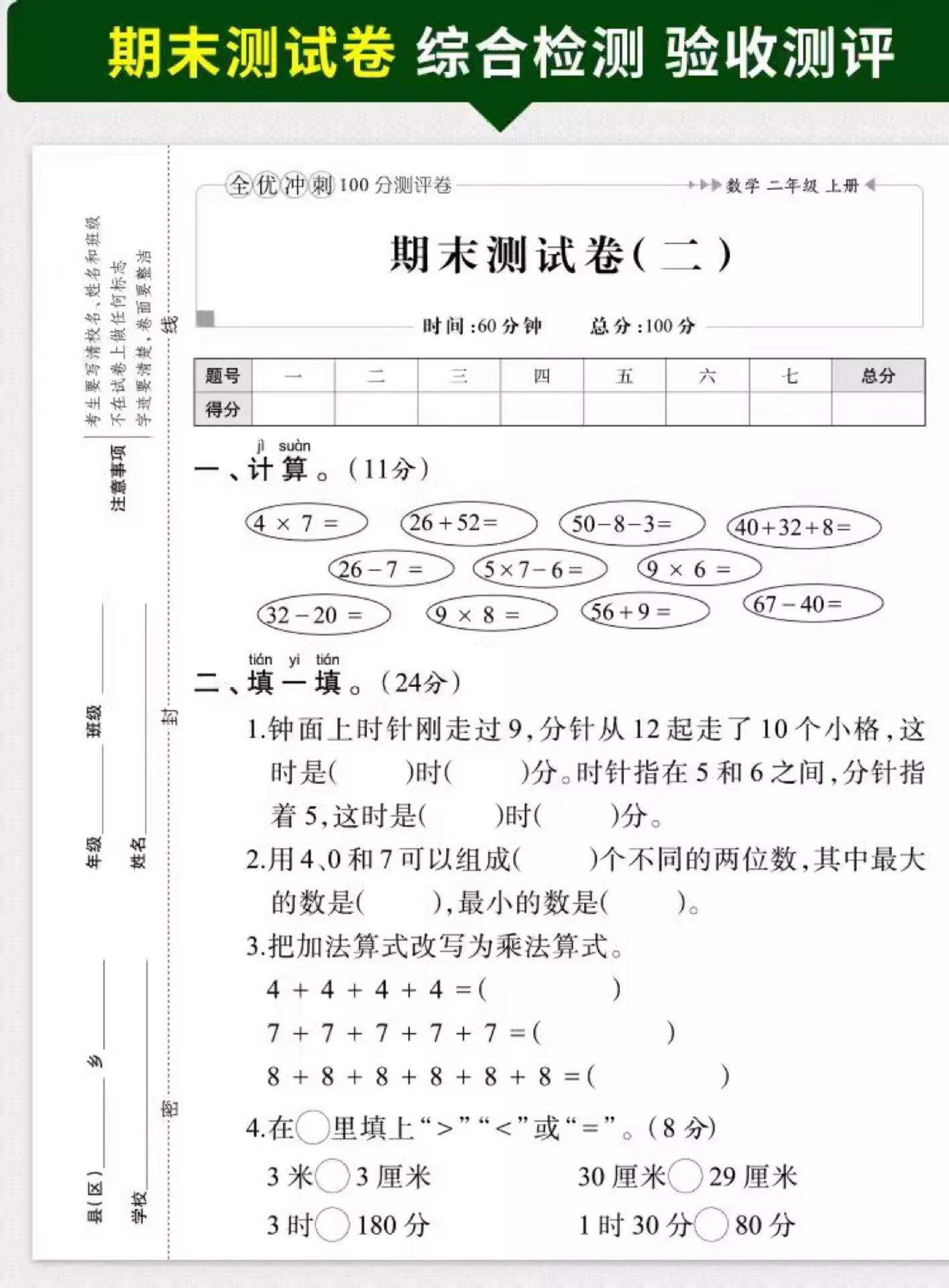 Тестовые задания для начальной школы, 100 баллов, китайский, математика и английский