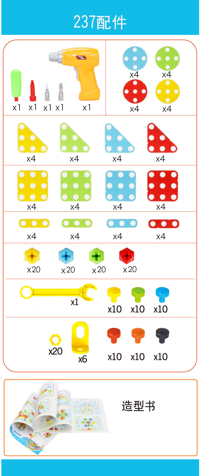 Разборный набор из 237 деталей, игрушка с электрической дрелью, DIY, строительные блоки