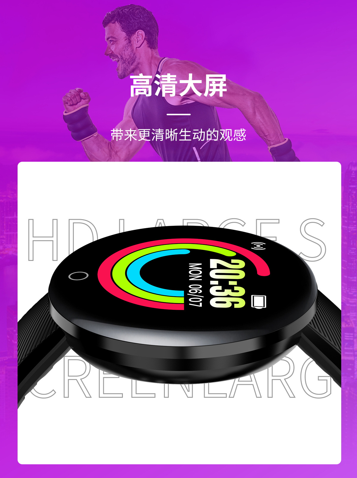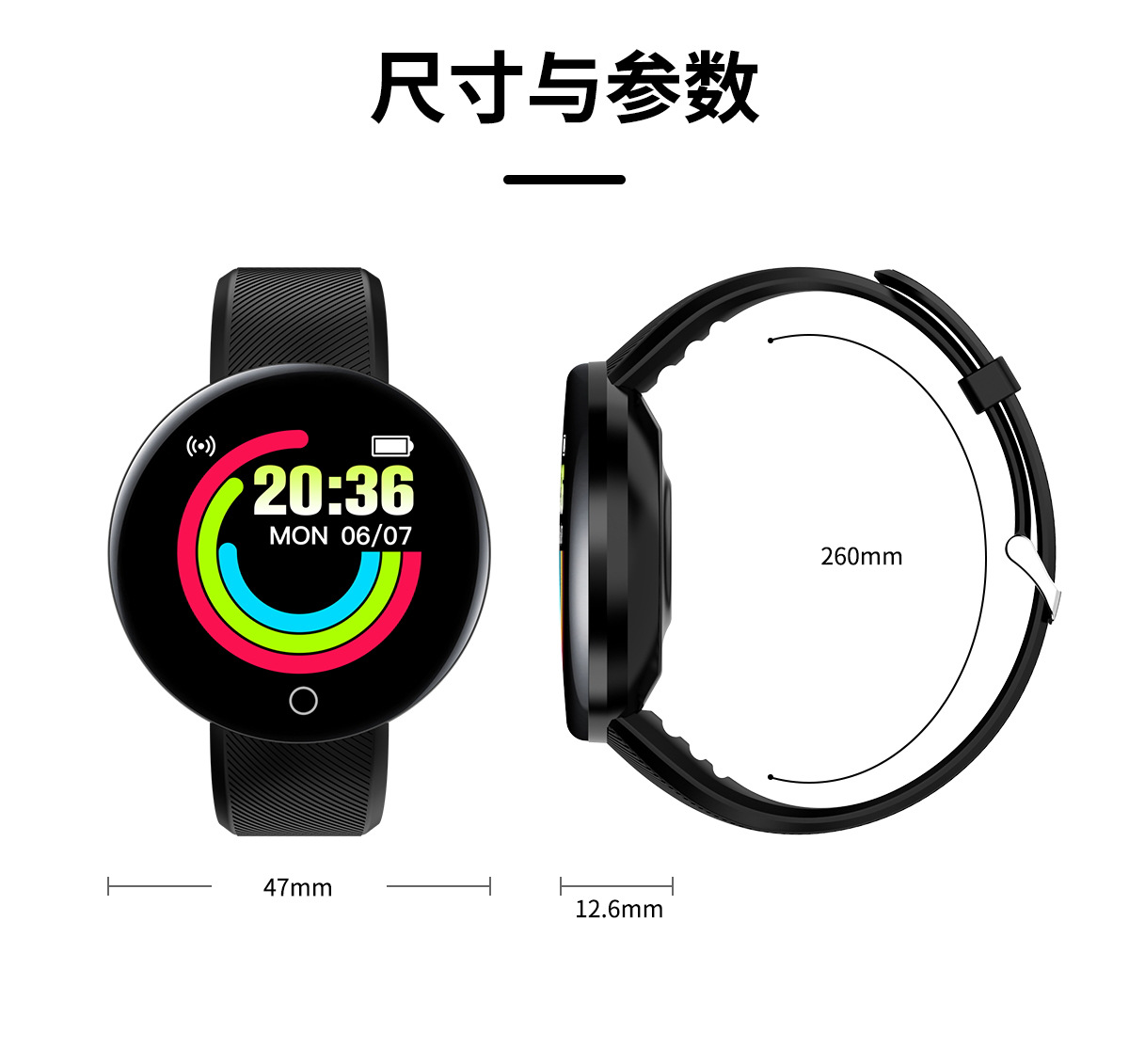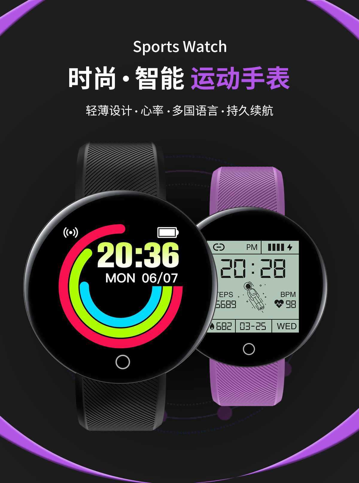 Умный браслет D18 Цветной экран Модный спортивный браслет Шагомер Мониторинг сна Частота сердечных сокращений Напоминание о здоровье Кросс-бордерный