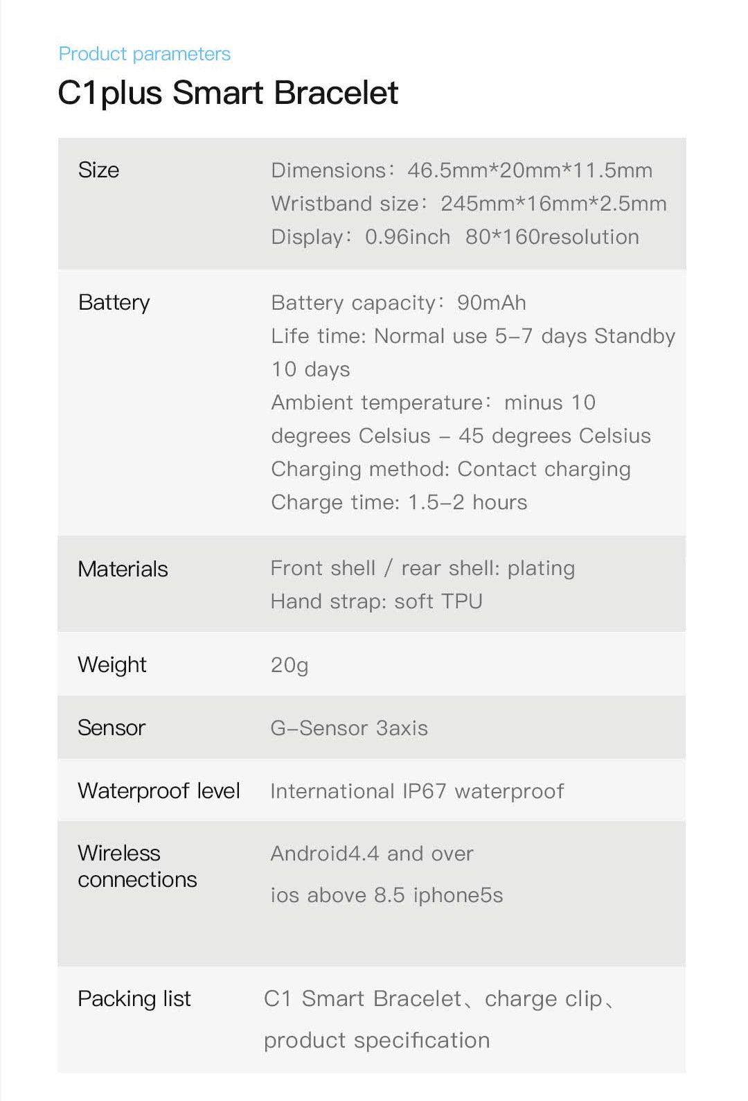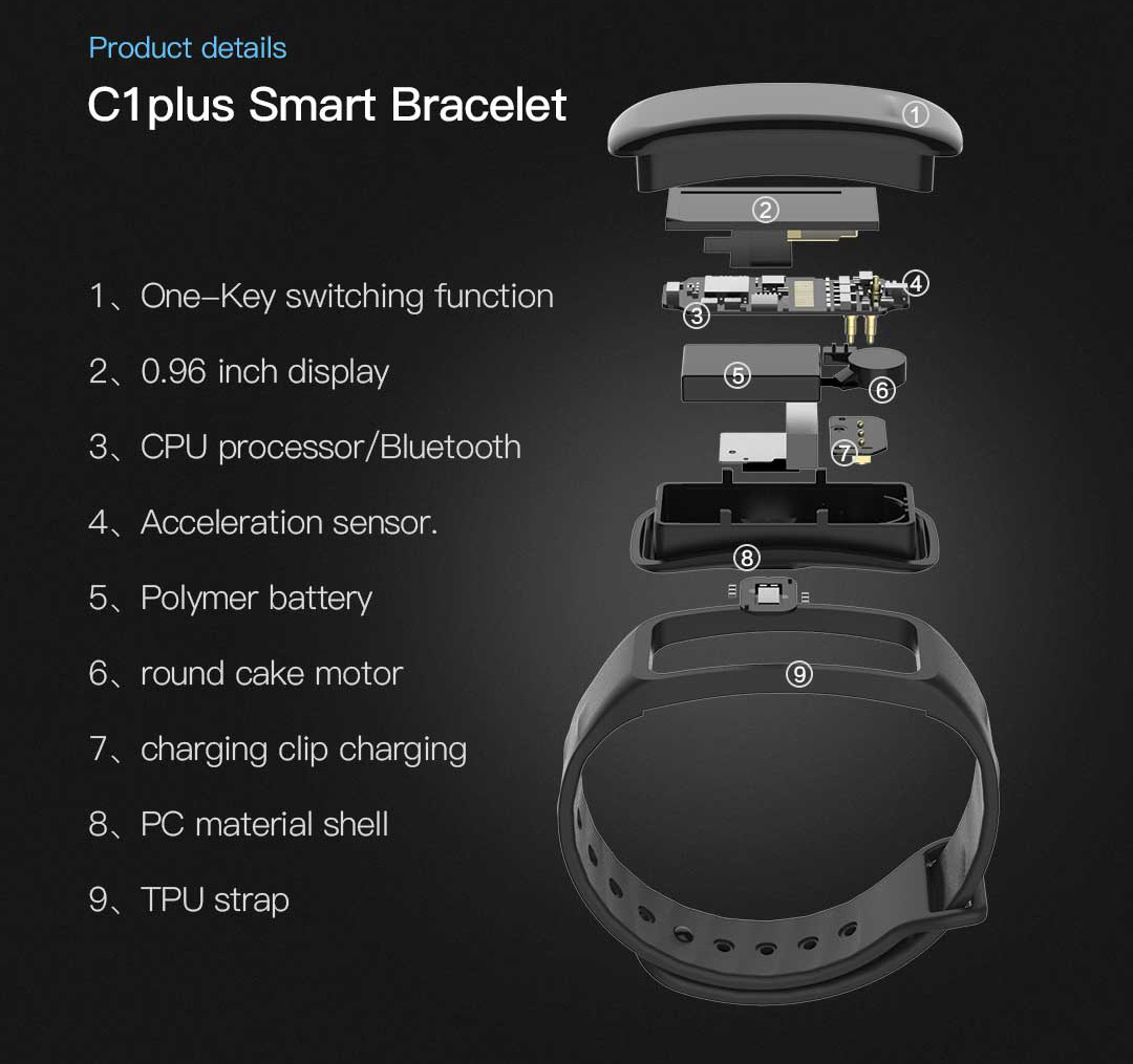 Умный спортивный браслет C1plus Для студентов и взрослых Цветной экран Мониторинг частоты сердечных сокращений Шагомер Частота сердечных сокращений Кислород в крови Многофункциональное здоровье