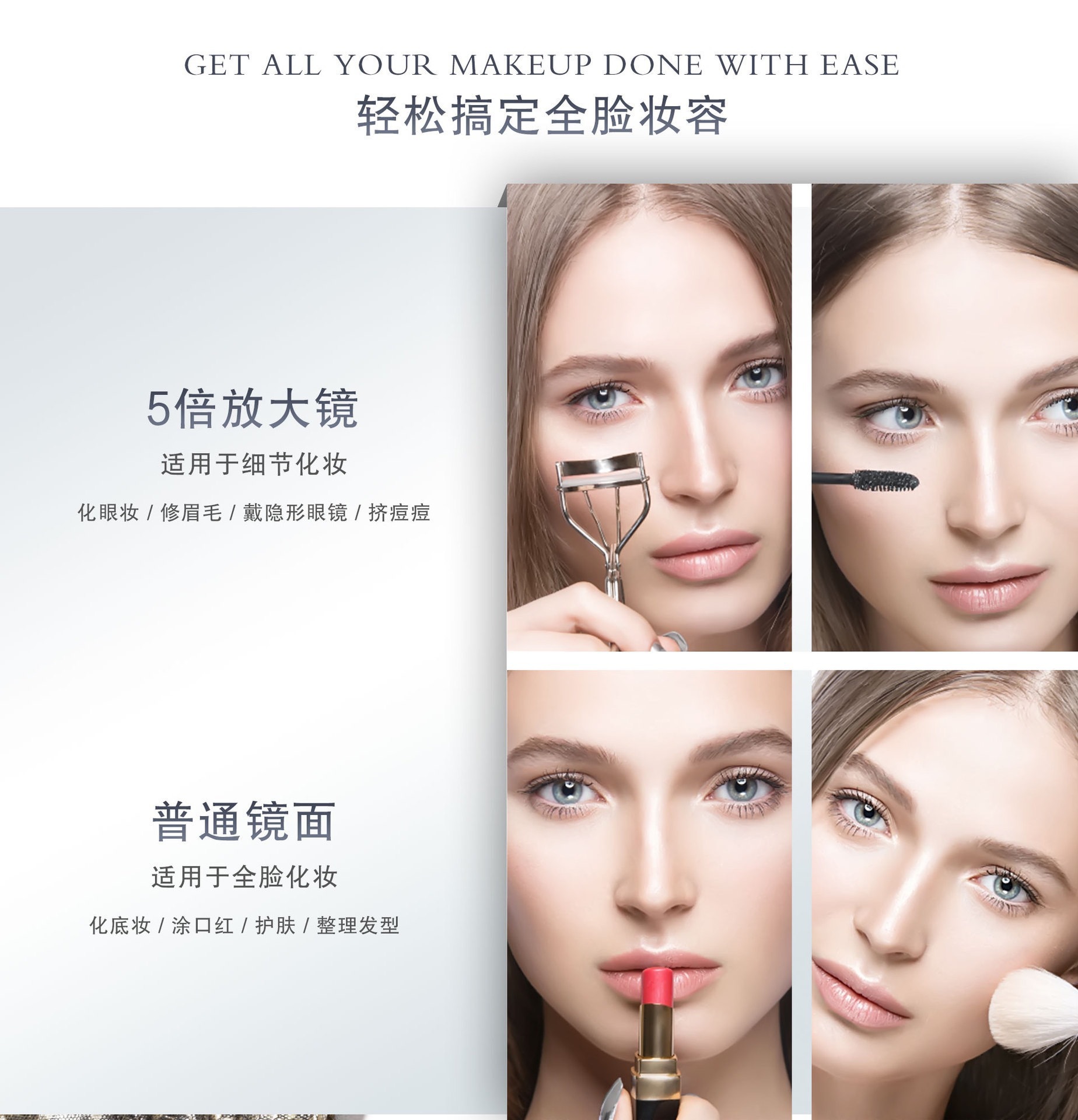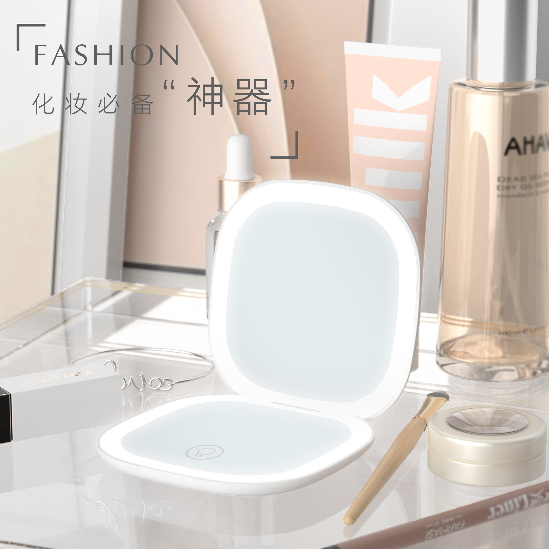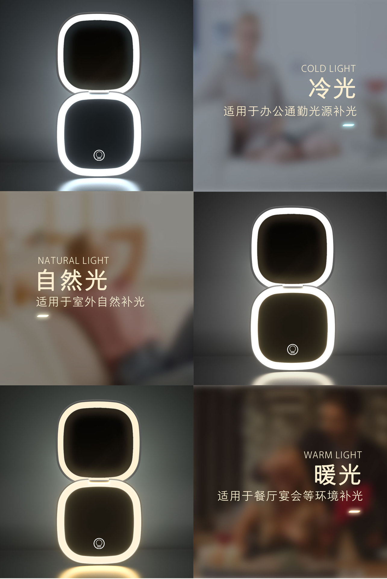 Кросс-Бордер LED Двустороннее Зеркало для Макияжа Мини Складное Портативное Зеркало 5 Раз Увеличение Трехцветный Свет Регулируемое Ручное Зеркало для Макияжа