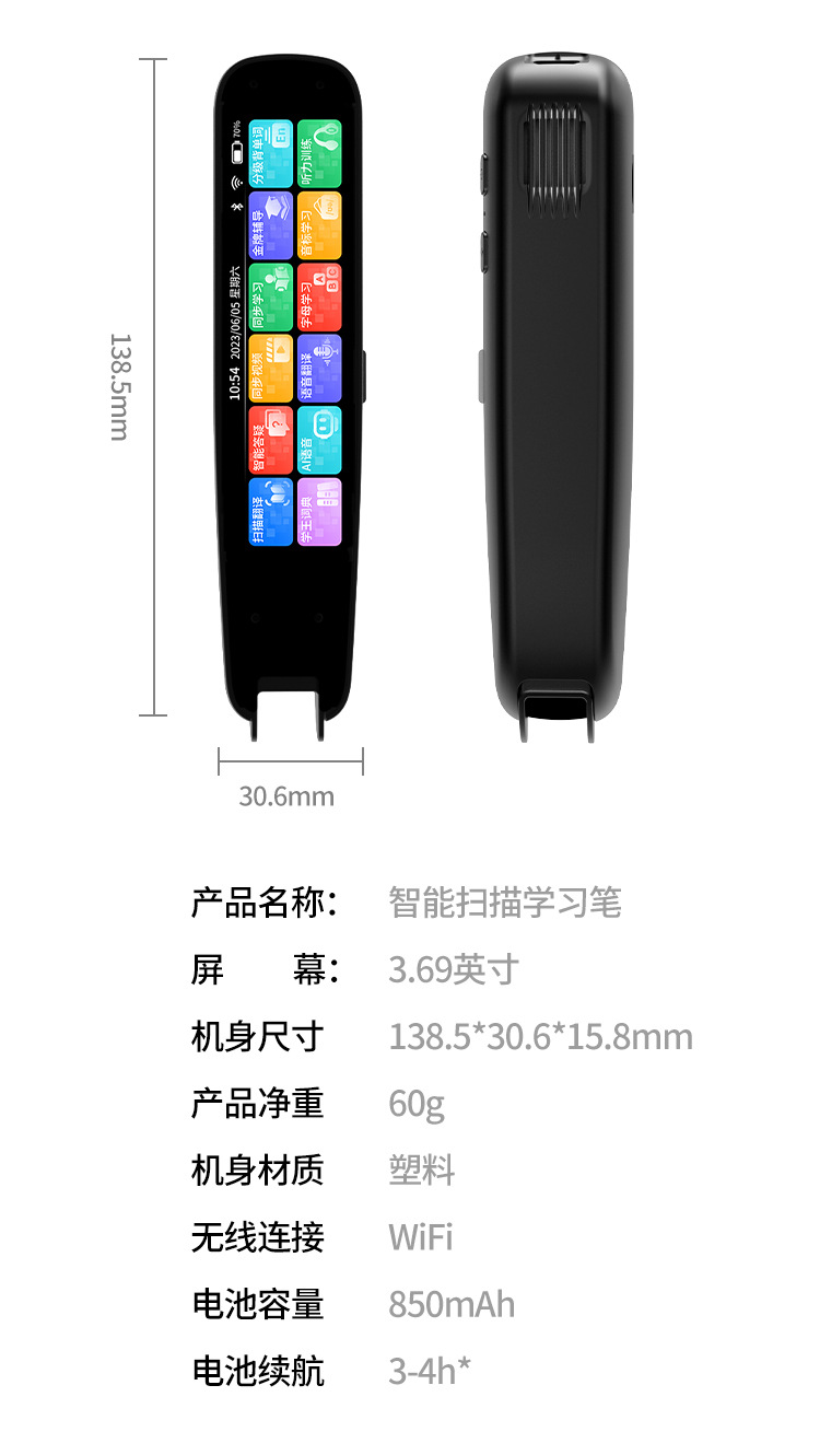 Офлайн умная считывающая ручка с большим экраном, словарная ручка с WiFi проектором