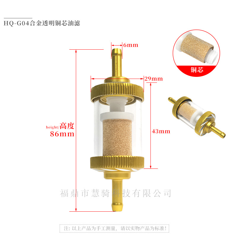 ![]() | HQ-G06-6mm translucent small oil filter | ¥2.3 / ≈ 28 ₽ | 3409 | 5352236830668 | |