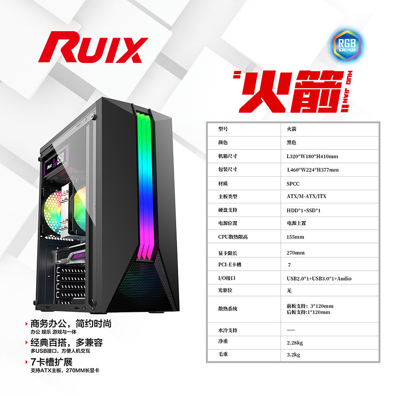Корпус для настольного компьютера, RGB световая панель, ATX, прозрачный боковой, игровой корпус