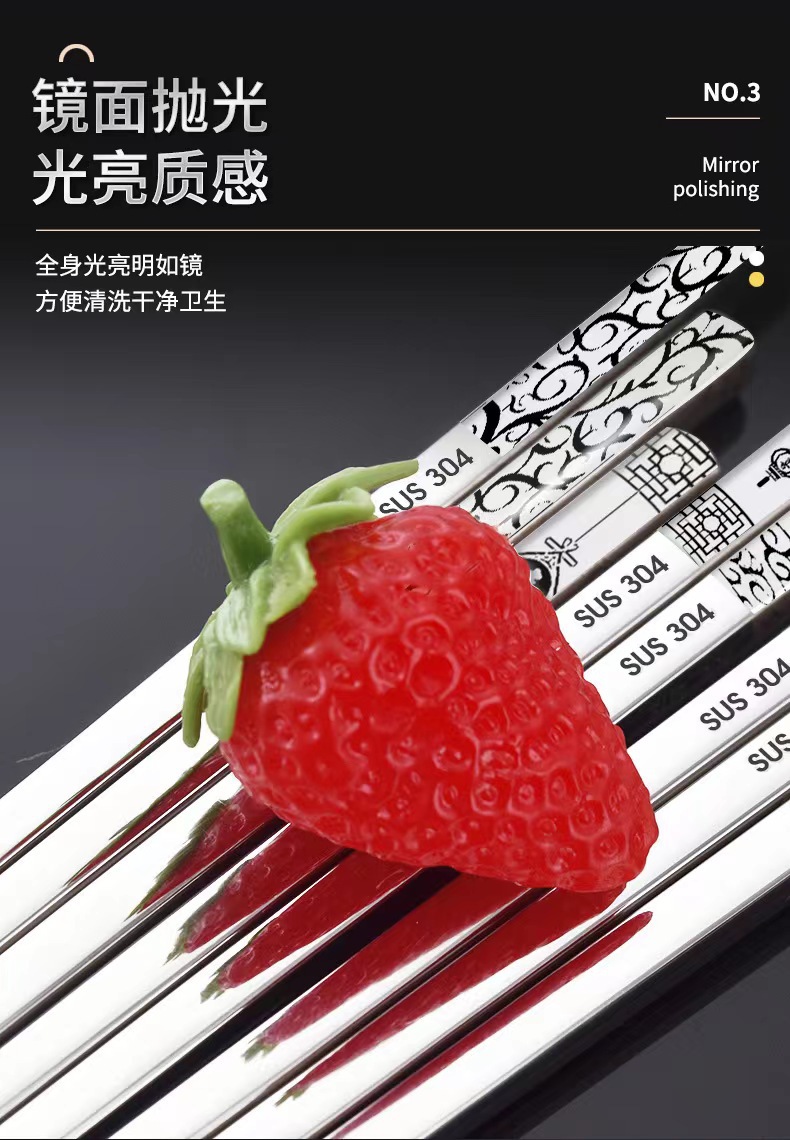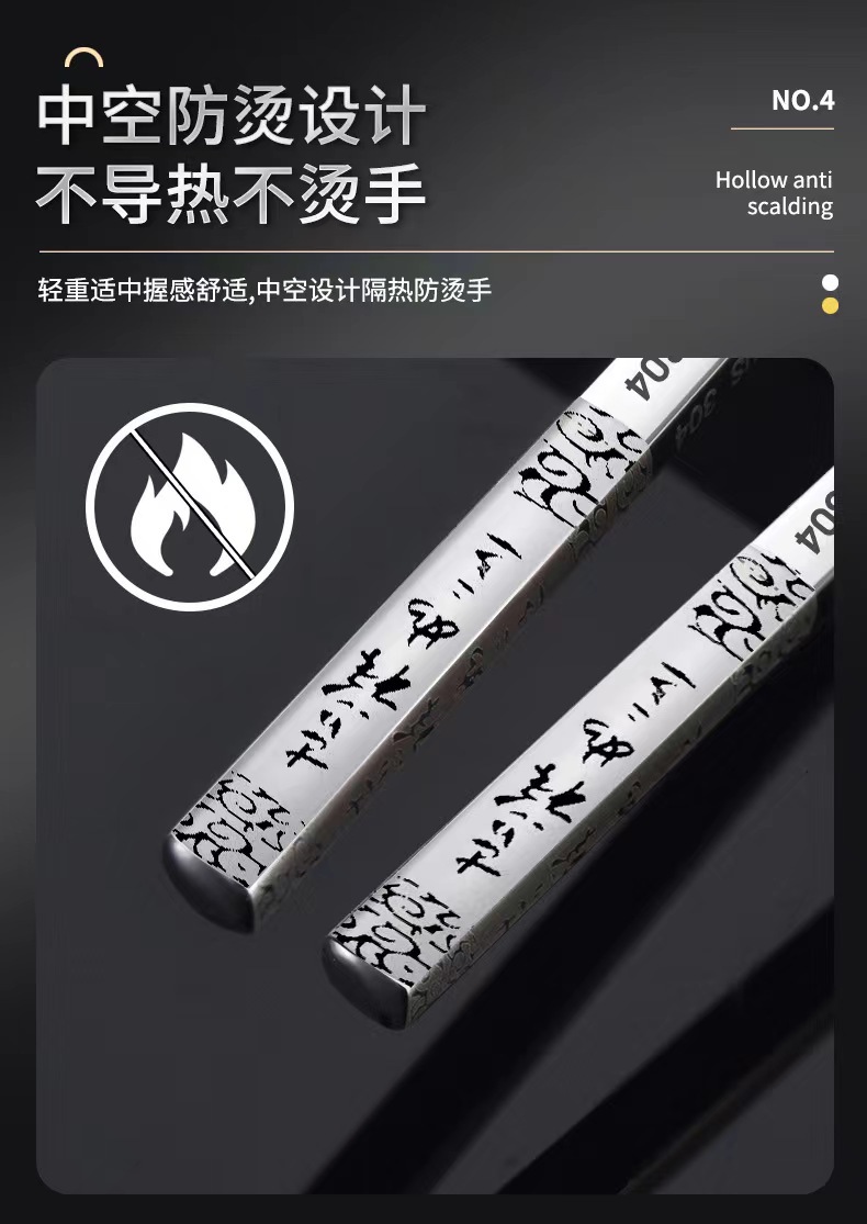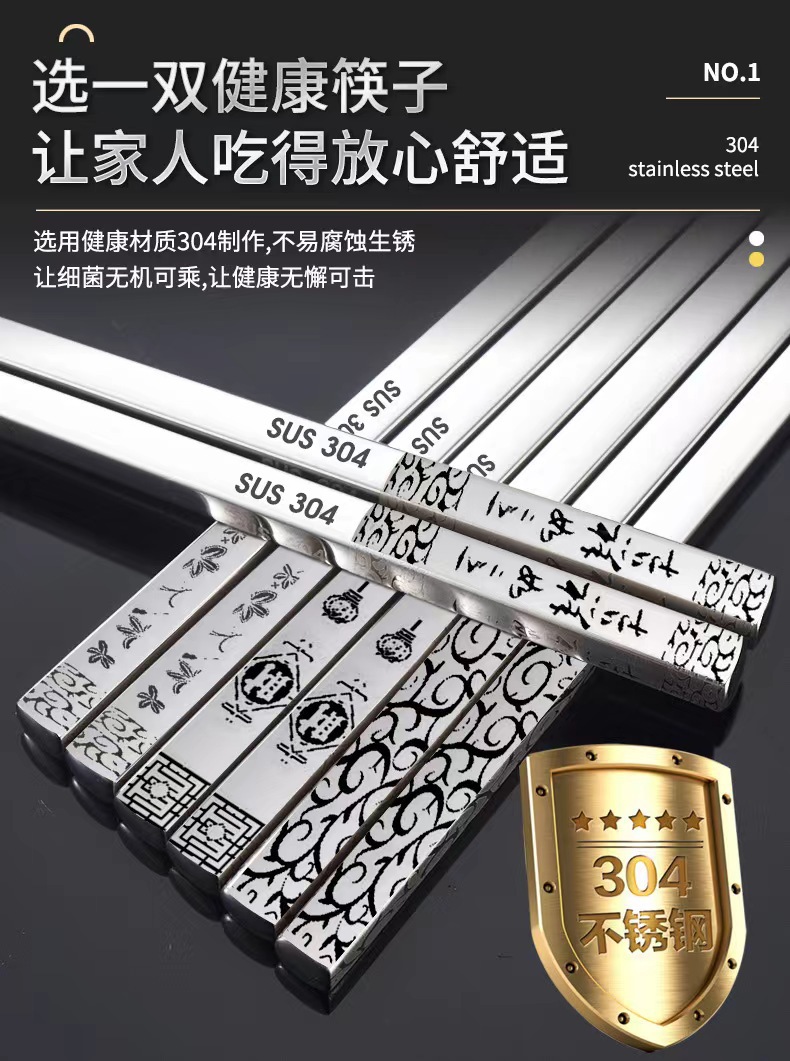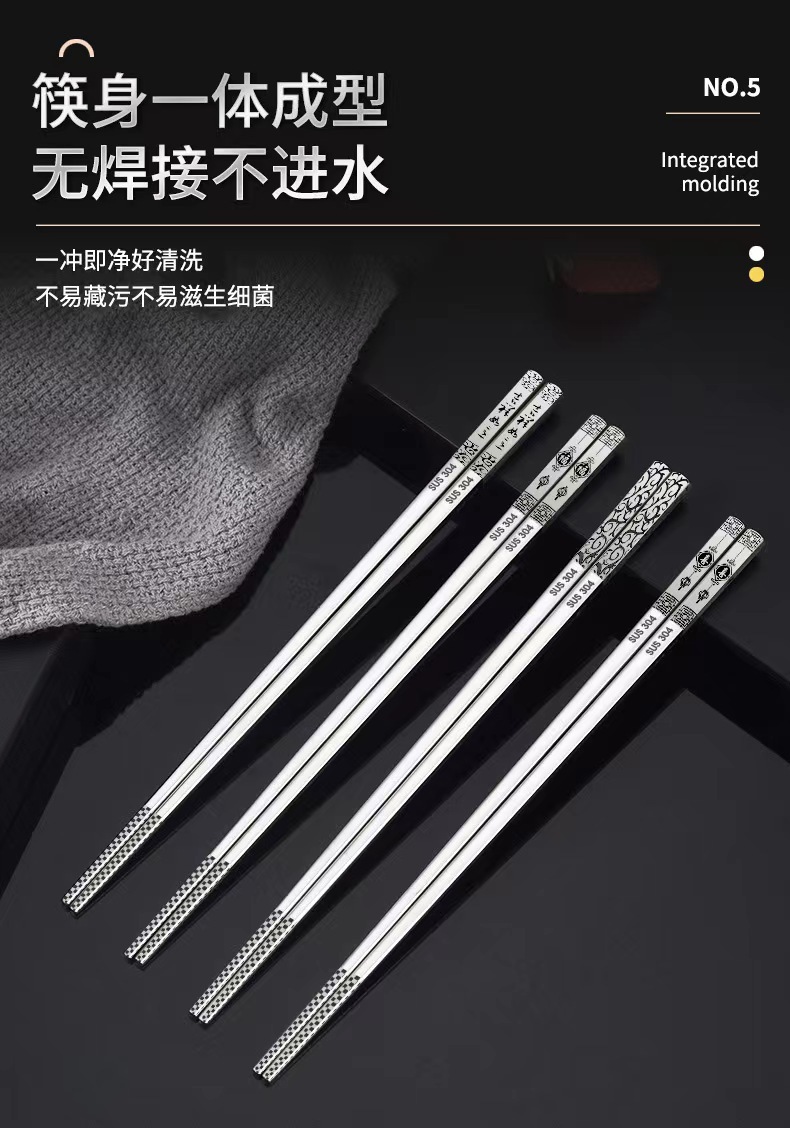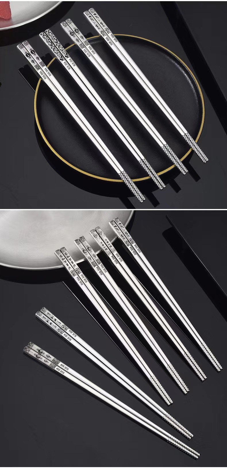 Длинные палочки для еды из нержавеющей стали 304 для дома, нескользящие с красным символом удачи, 5 дюймов, набор для совместного обеда