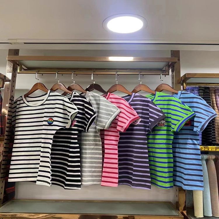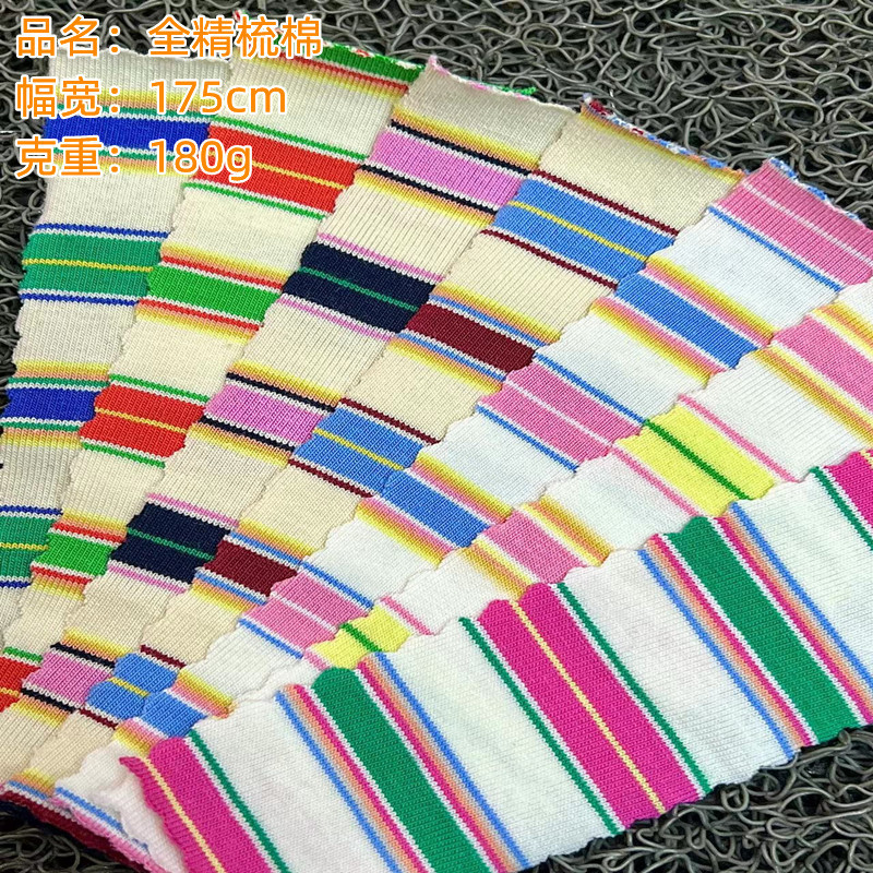 Вязаная футболка из чистого хлопка с цветными полосками 32s, модная детская и женская одежда