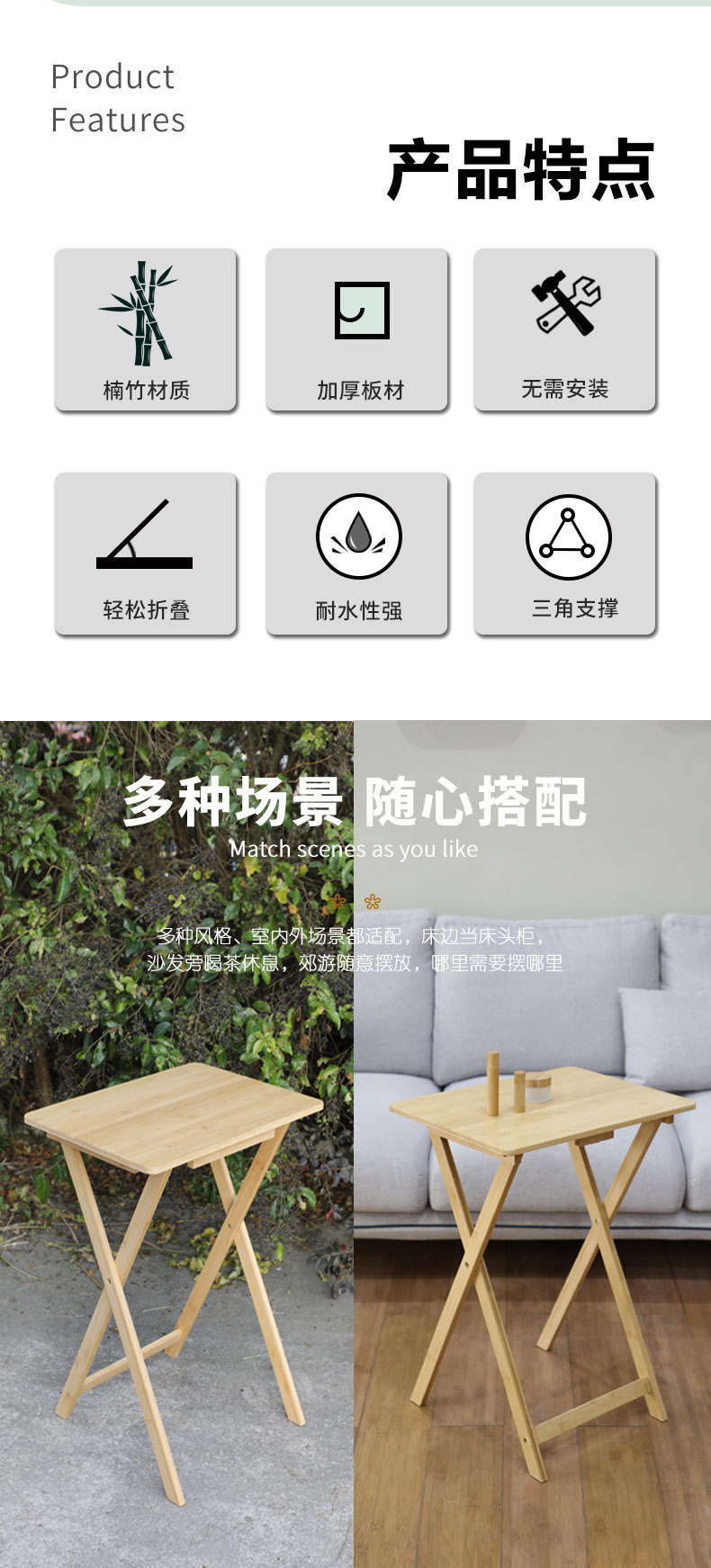 Складной стол Samexi из бамбука, бамбуковый компьютерный стол, стол из массива дерева, стол для учебы, боковой столик для дивана, без установки