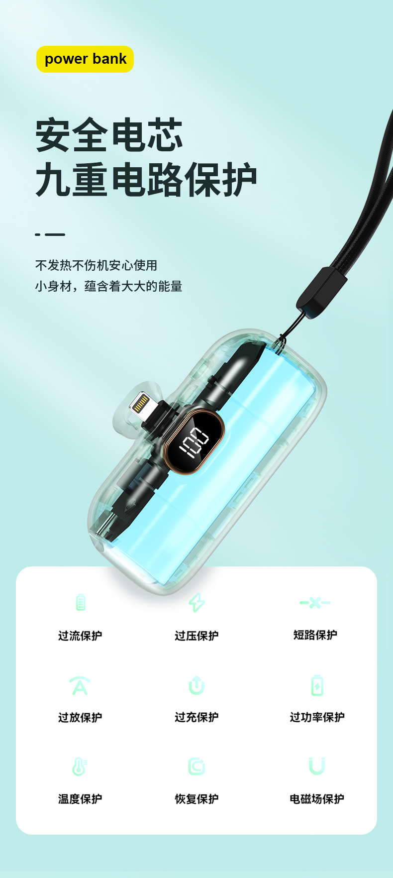 Фабричная оптовая продажа новой модели пауэрбанка с встроенным кабелем