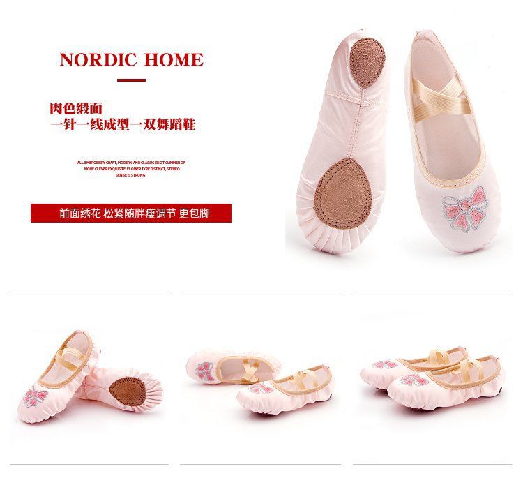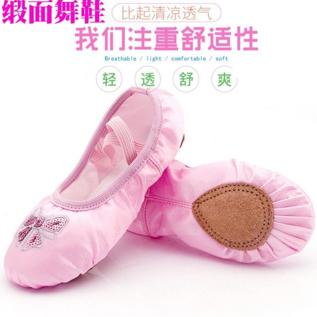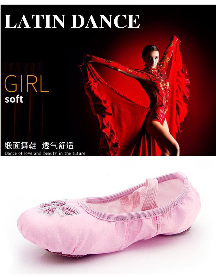 Сатиновые детские танцевальные туфли для девочек, балетные туфли с вышивкой и блестками, мягкое дно, обувь для йоги