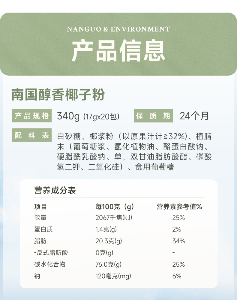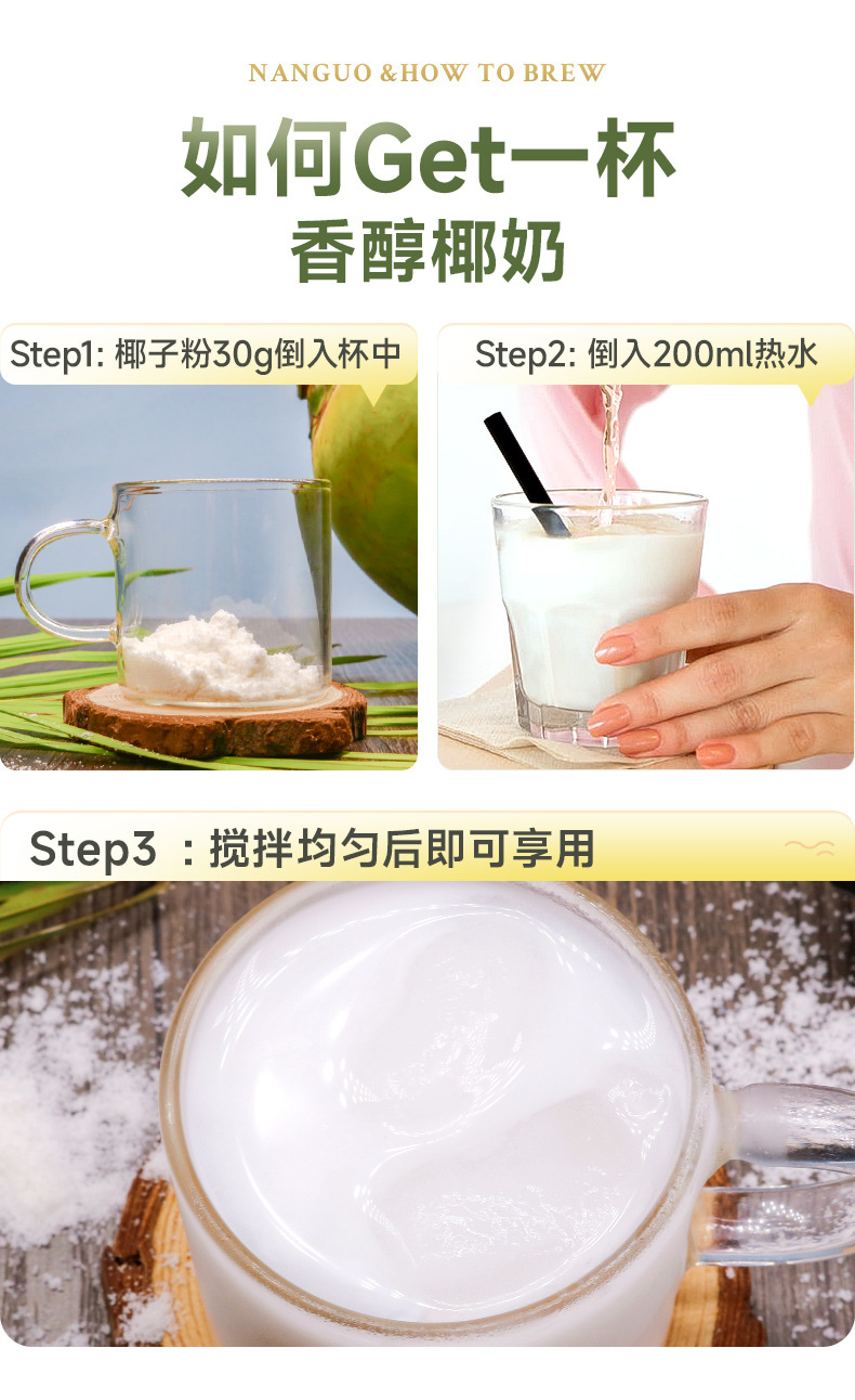 Мгновенный кокосовый порошок Nanguo food Специальность Хайнань 340г Упакованный Пюре кокоса Заваривание Завтрак Кокосовое молоко Порошок кокоса