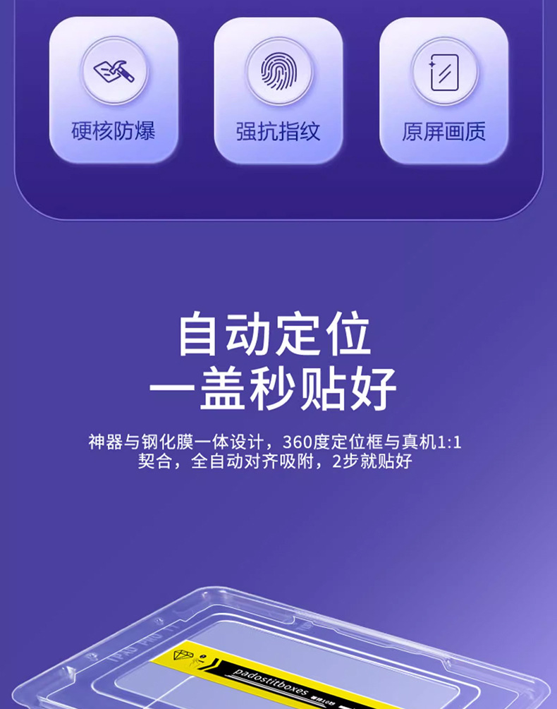 Характеристики пленки Hd, Explosion-proof, Dustproof, Anti-fingerprint, Anti-fall, Full screen, Anti-peeping, Anti-blue light, Anti-violet light, Second sticker box