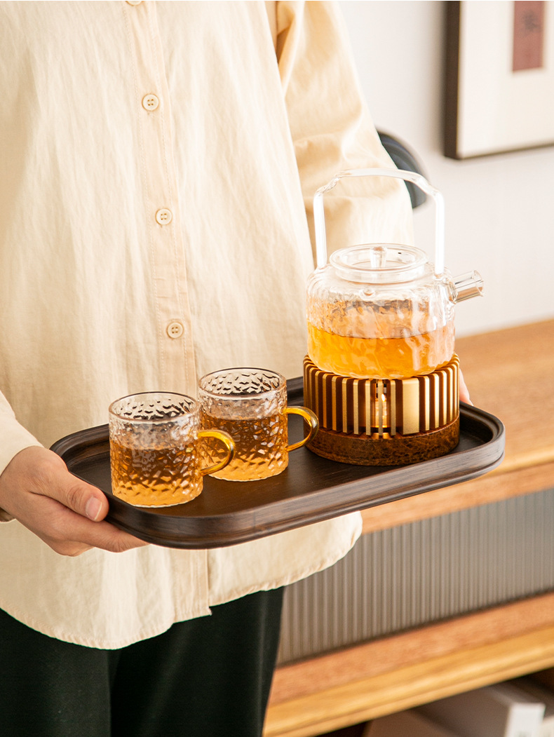 Стеклянный цветочный чайник, комплект для домашнего послеобеденного чая с цветами и фруктами, подставка для свечи, подогрев, подарочная коробка