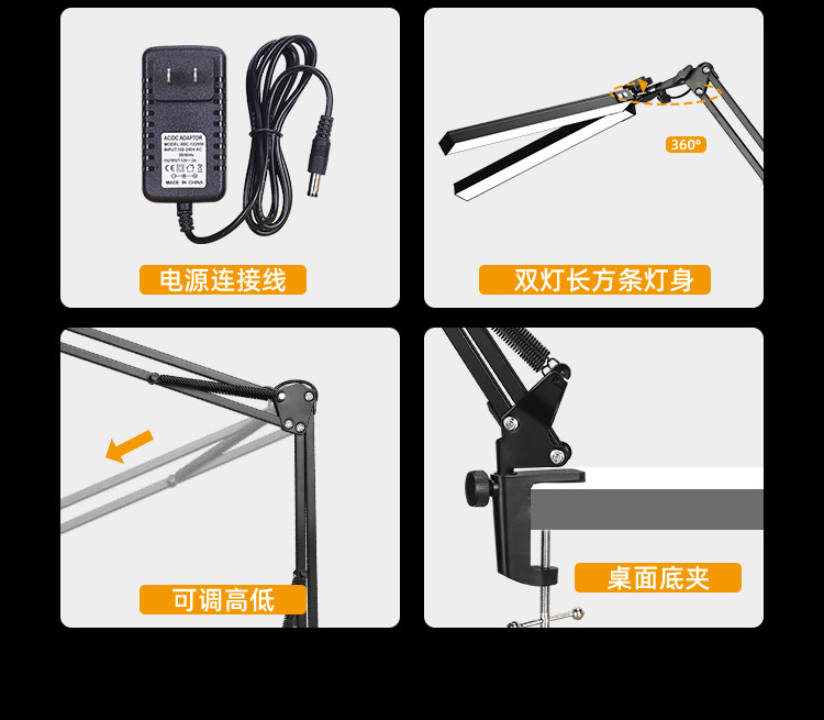 Кросс-браузерная светодиодная лампа для чтения с длинной рукой и зажимом, настольная лампа для работы с защитой глаз