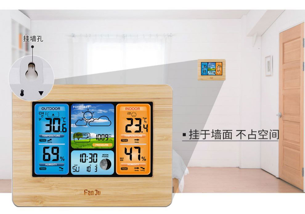 Цветные экранные погодные часы 3373 с бамбуковой поверхностью электрические волновые часы многофункциональные календари