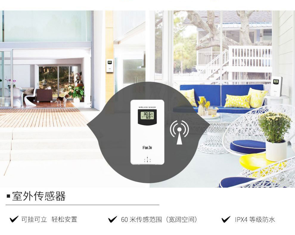 (13)可挂可立无线室外感测器(433.92MHz RF传感频率,60米传感范围,防水)