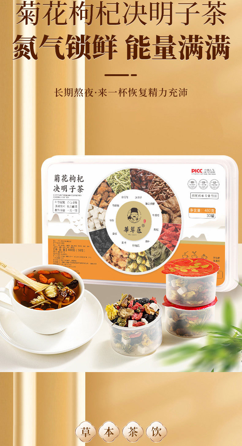 ![]() | (order in multiples of 30) chrysanthemum, goji berry, and cassia seed tea, 480g / (30 cans/box) | 1шт: ¥1.45, 2000шт: ¥1.20, 10000шт: ¥1.10 | 9965 | 6090637774574 | |