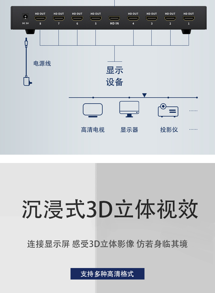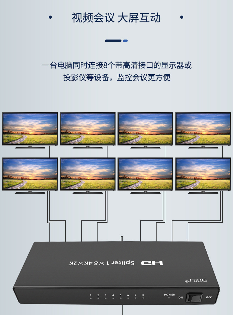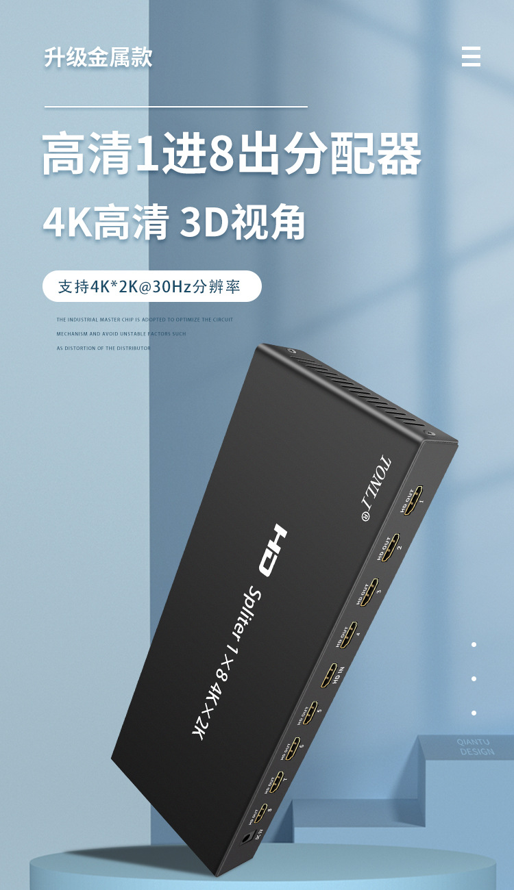 4K HDMI дистрибьютор один-в-восемь 8-канальный HD 4k2g большой экран специализированный сплиттер