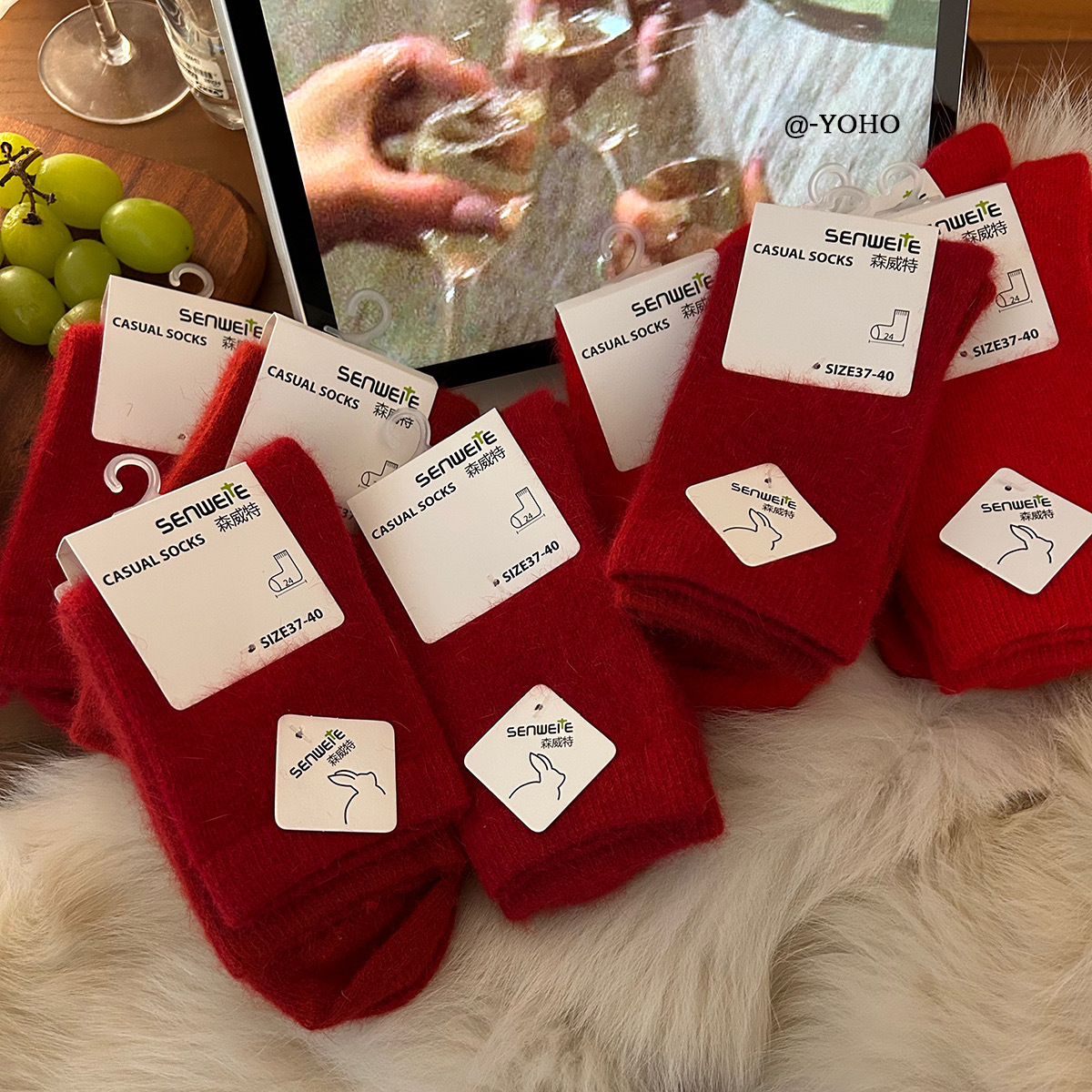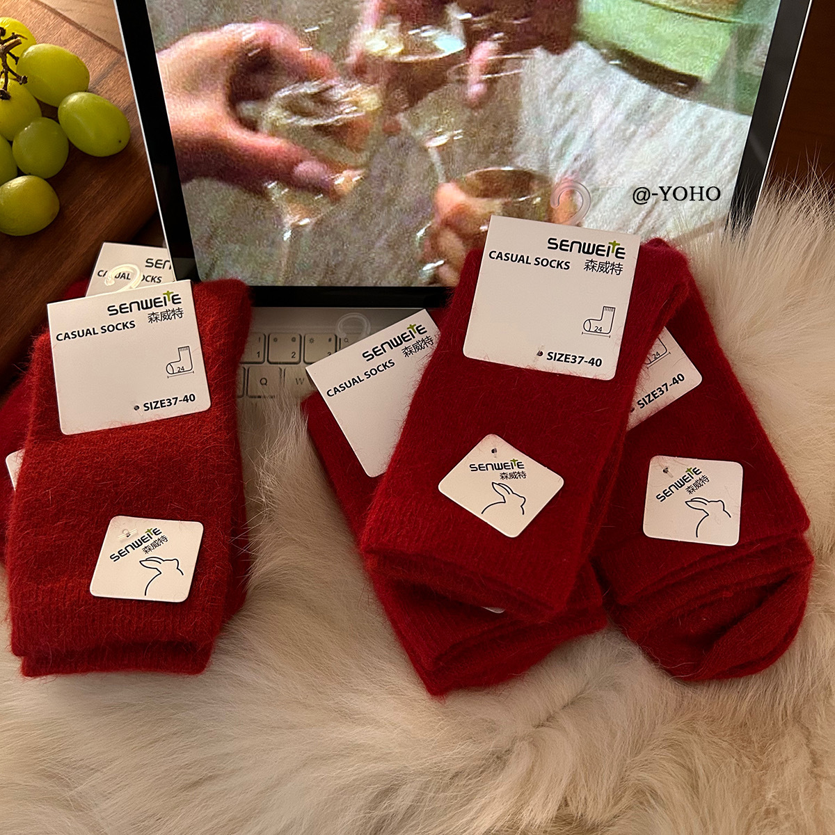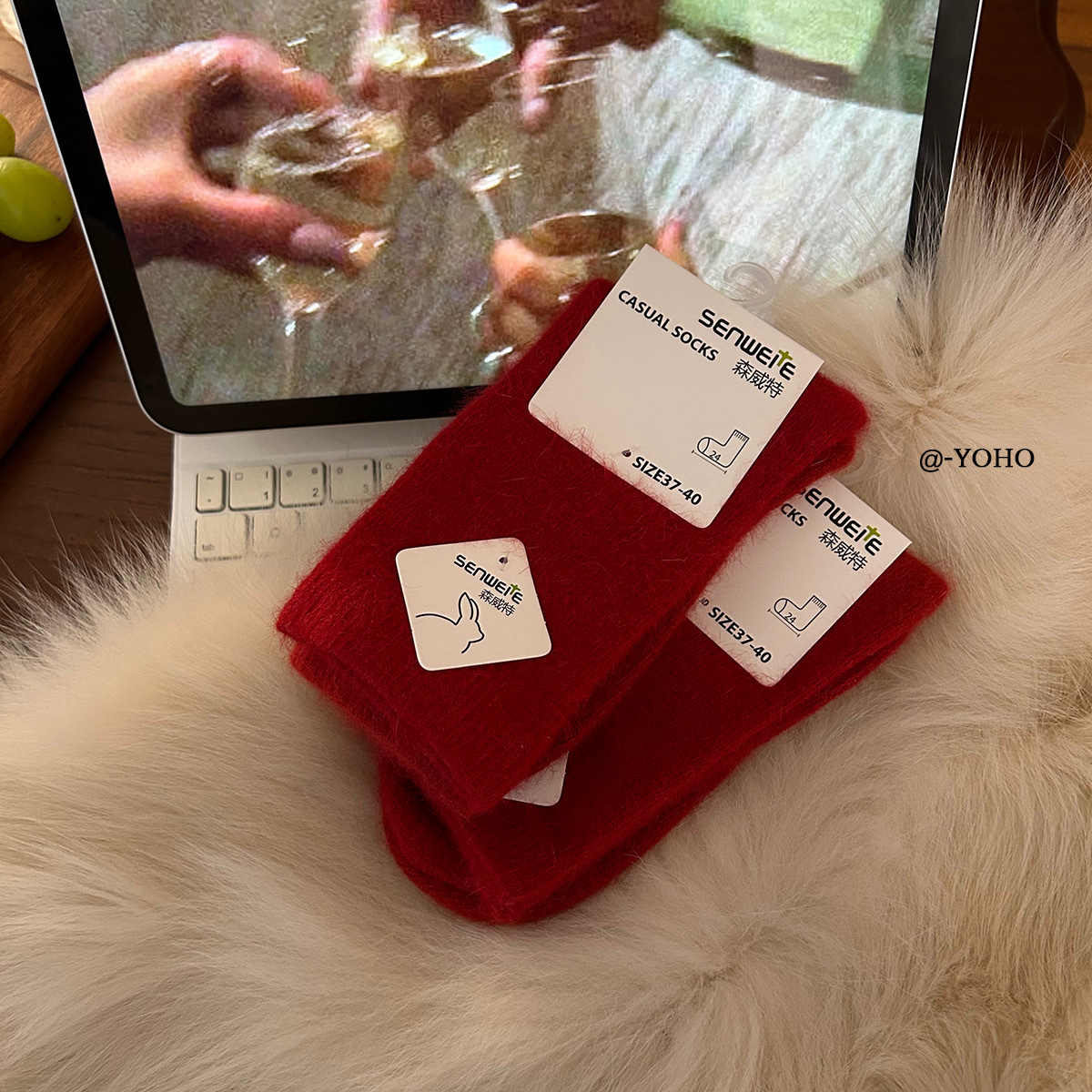 Супер теплые носки из настоящей кроличьей шерсти для женщин, до середины икры, японский стиль